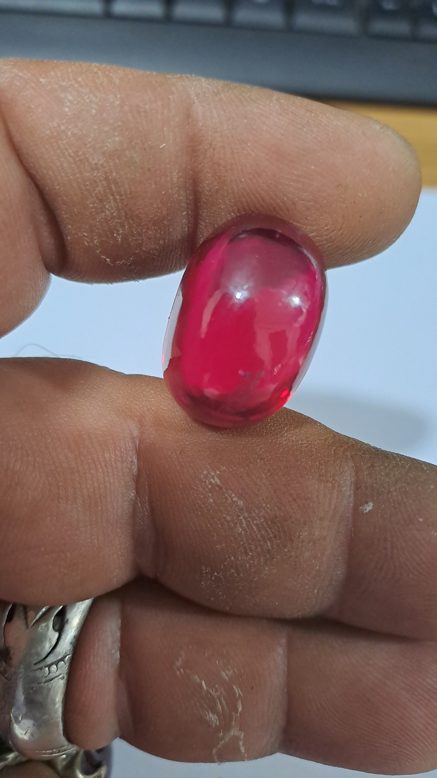وزن 62.0 قیراط درشت و وزن دار تراش دامله (گنبدی)-طبق تصویر-روی نگین یک مقدار خراشیدگی یا بهتر بگم نیاز به پولیش وجود دارد
