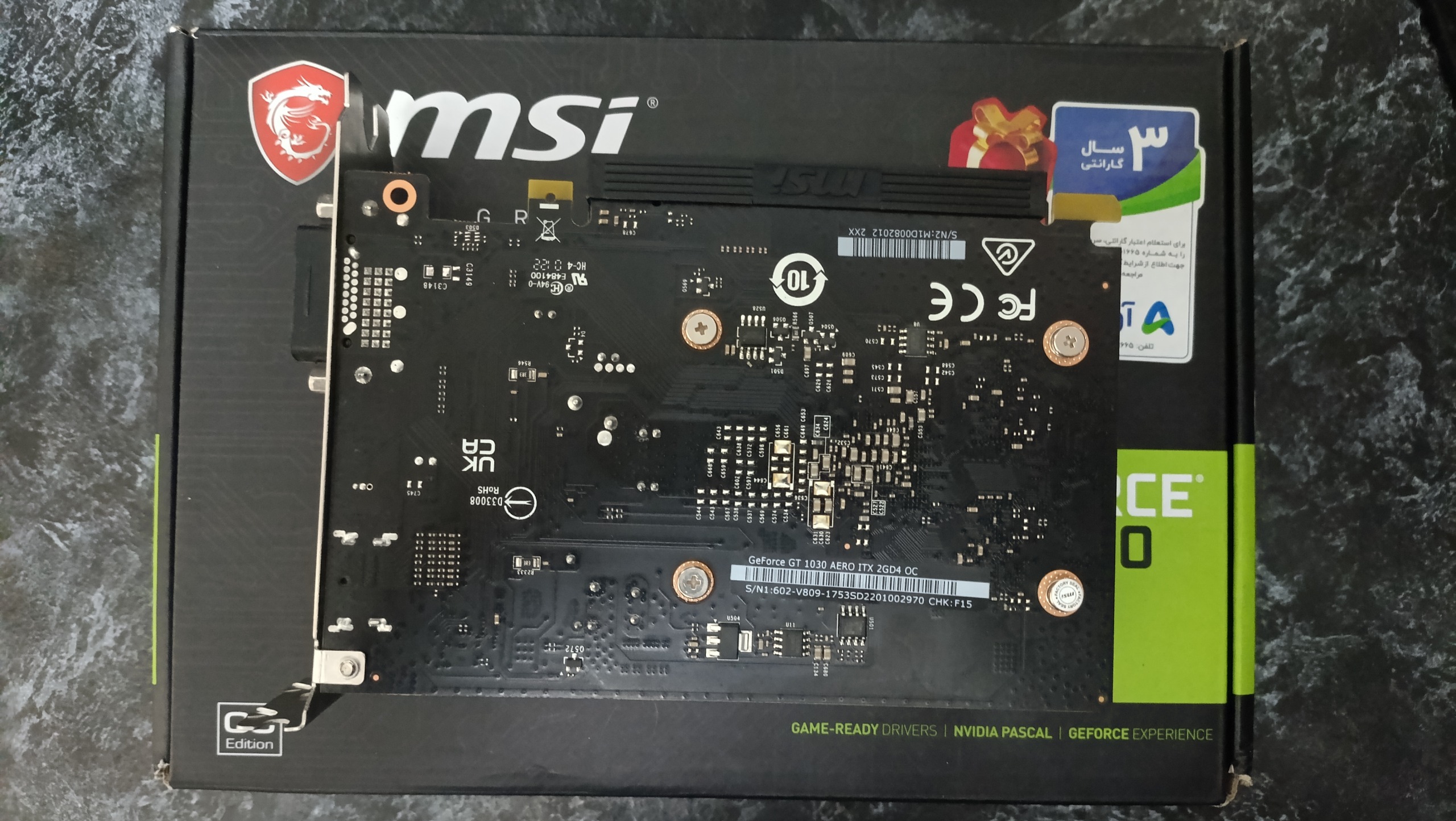گرافیک MSI GT1030 2GB GGDR5 OC کاملا سالم و تست شده و پلمپ و بدون بازشدگی میباشد