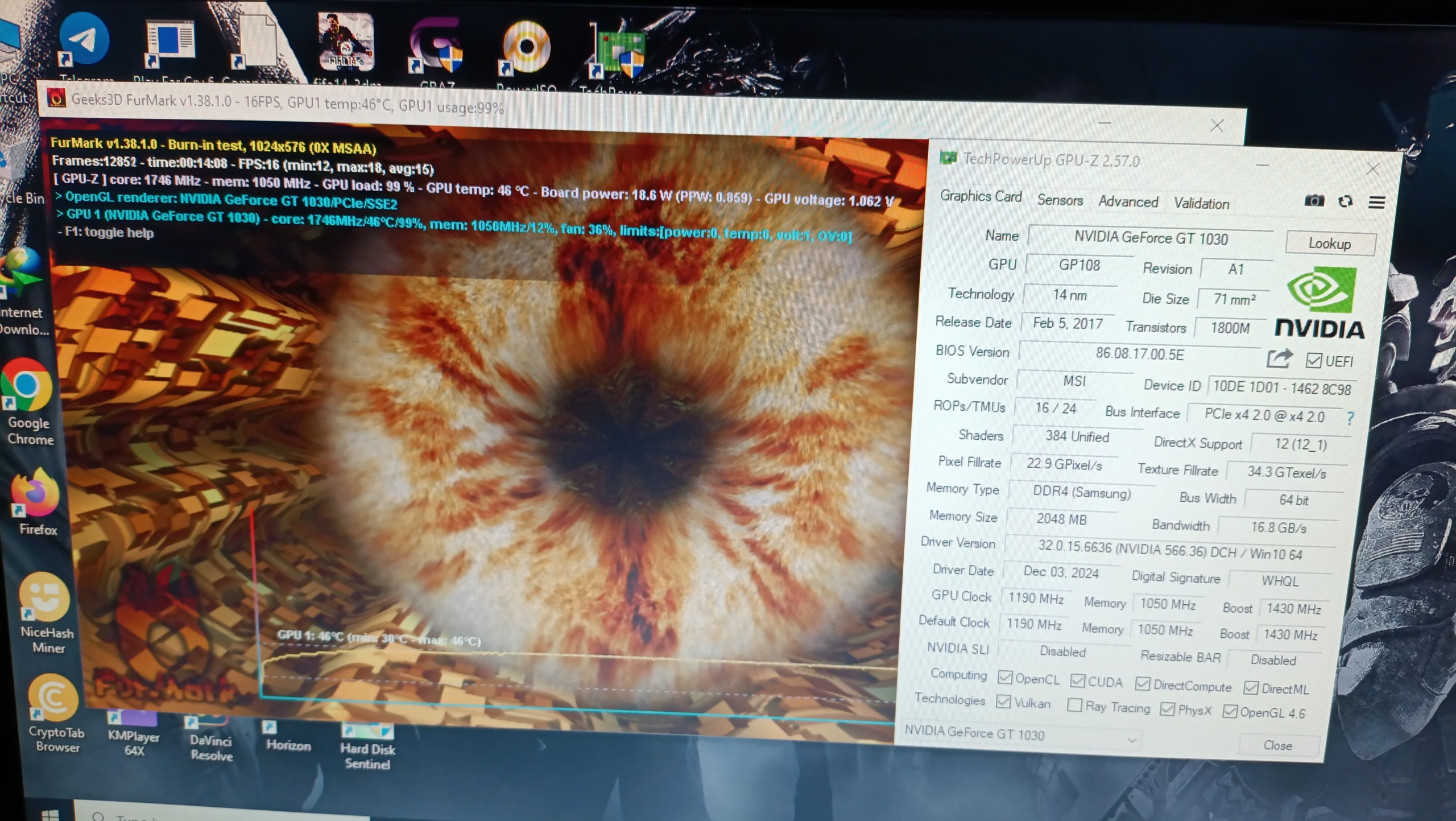 نتیجه تست فورمارک که نهایت فشار وارد شده به گرافیک در حدود 14 دقیقه و رزولیشن 1920*1080 FHD که در عکس آخر قرار داده شده (مشاهده فرمایید) دما کارت نهایت به 46 درجه میرسه که نشان از سلامت گرافیک میباشد