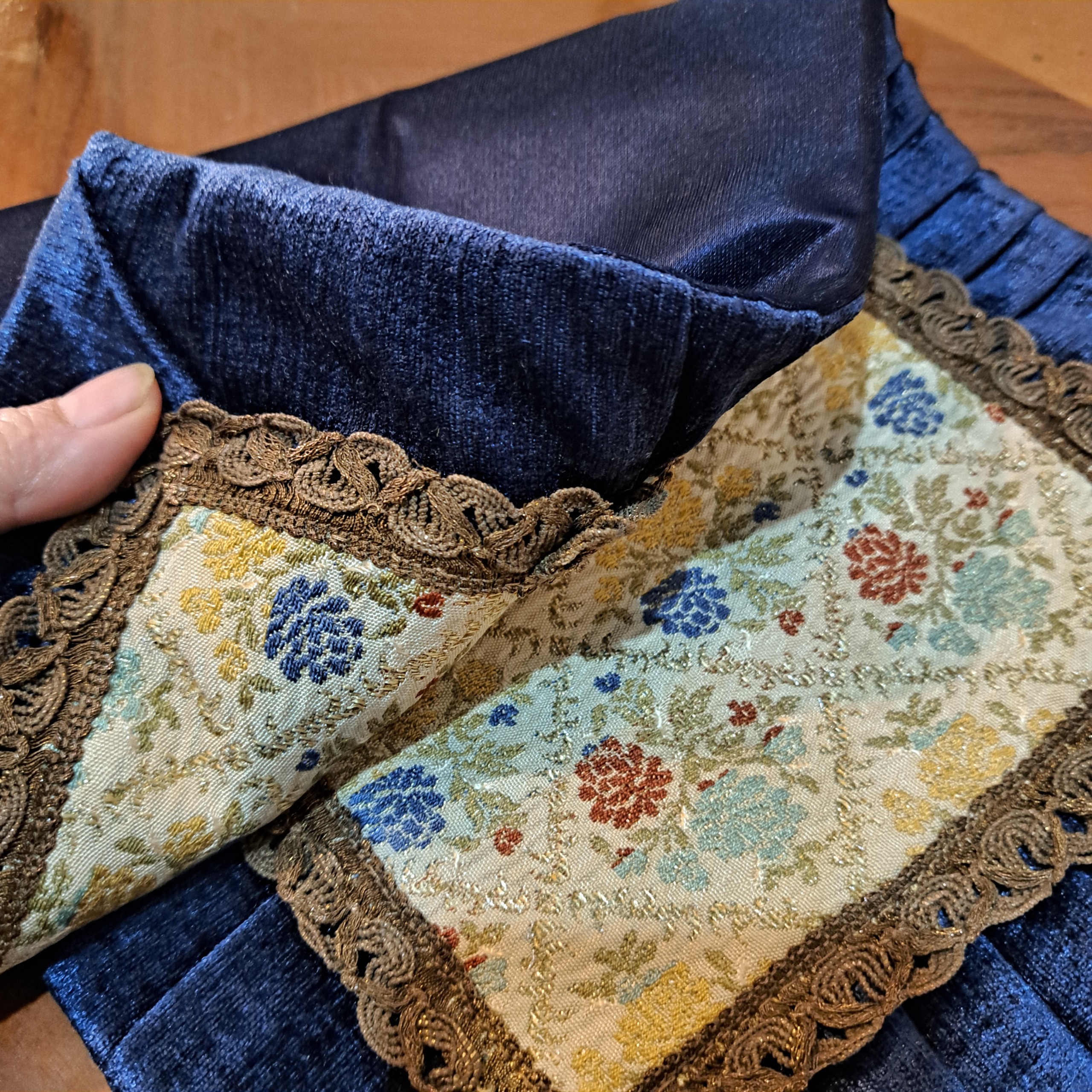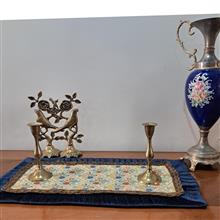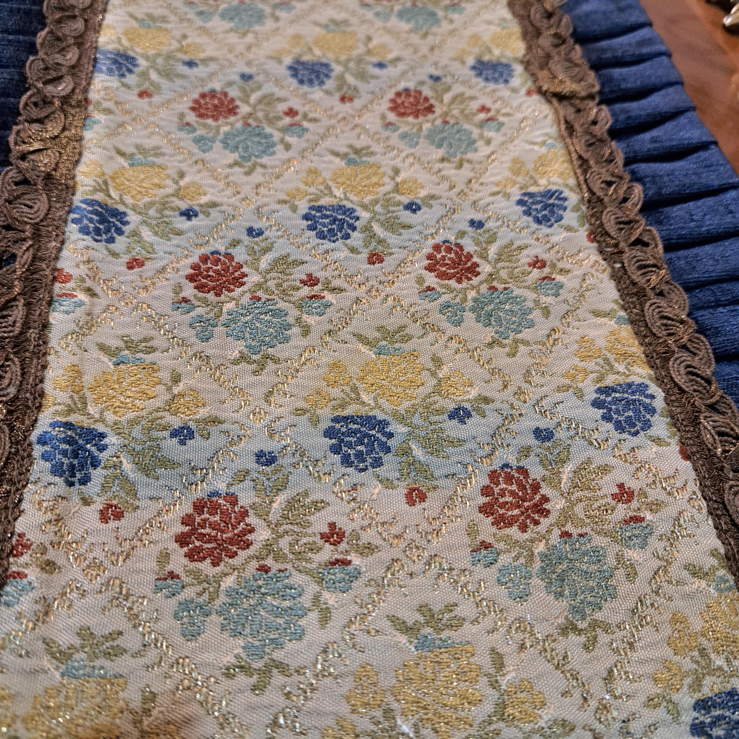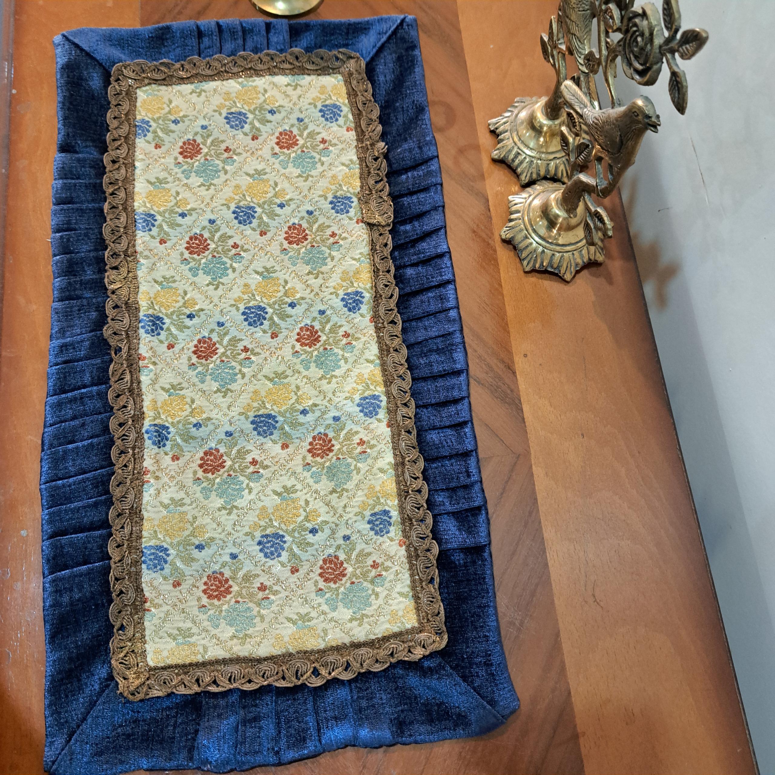 رومیزی زیبای قدیمی مخمل چین دار ترکیب مخمل با پارچه سوزن دوزی ماشینی ،زری دار با یراق سیمی قدیمی ضخیم دوزی شده استردار