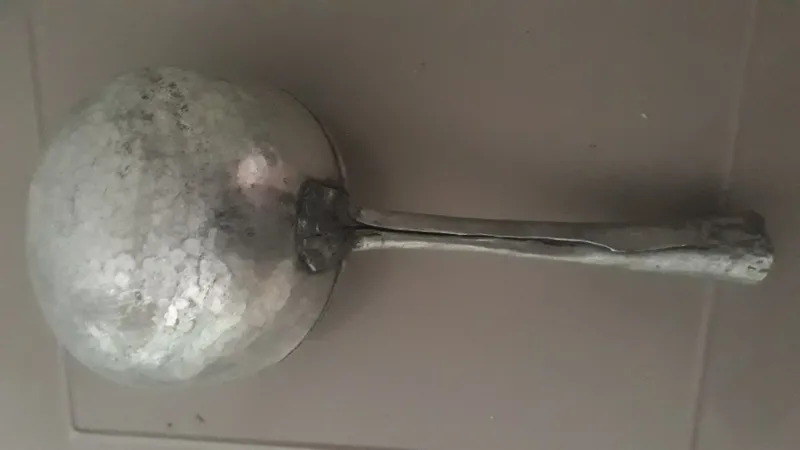 آبگردان مسی قله اندود 70سال قبل طول 40 سانت حدودا عمق 15 سانت دهانه 20 سانت حدودا وزن تقریبی شاید نزدیک یک کیلو