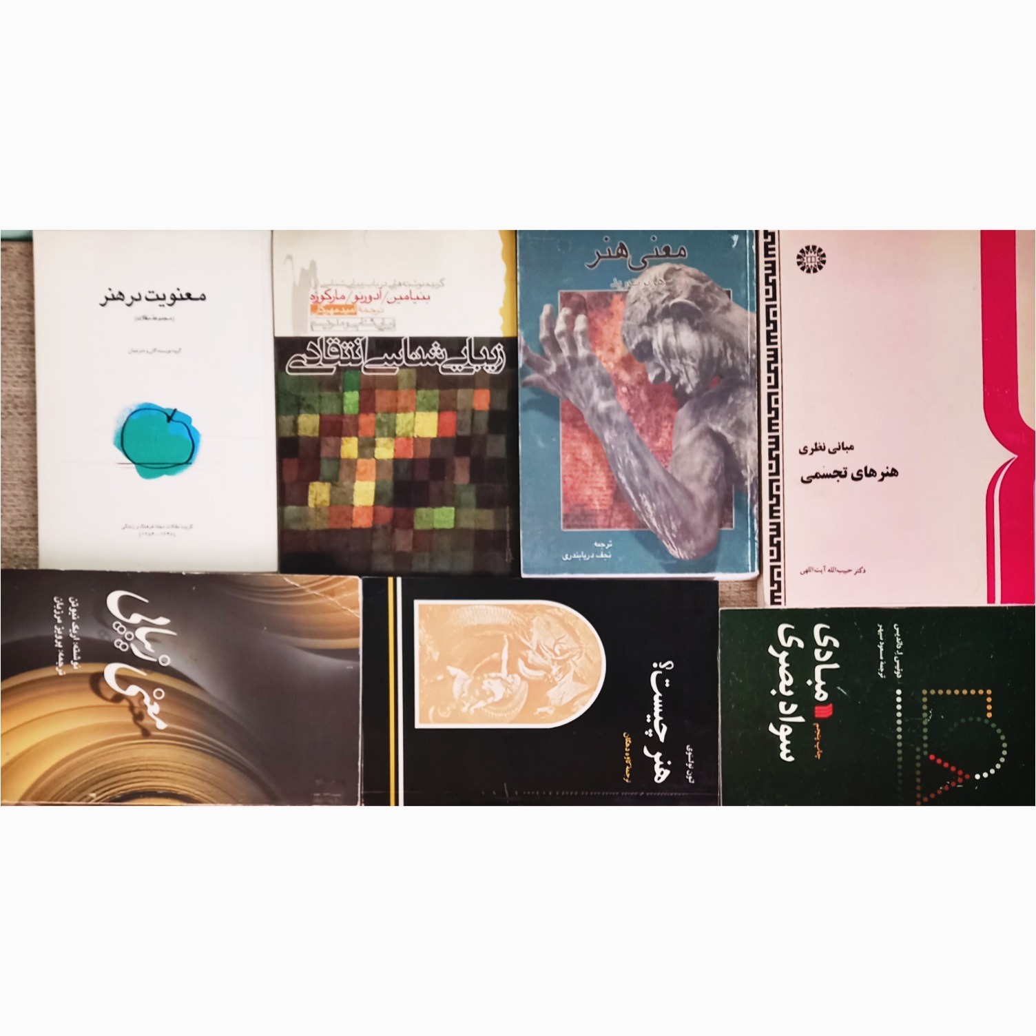 7 جلد کتاب هنردر حوزه مبانی نظری و فلسف هنر و  بیشتر مربوط به هنرهای تجسمی مانند نقاشی،گرافیک، مجسمه سازی و ....