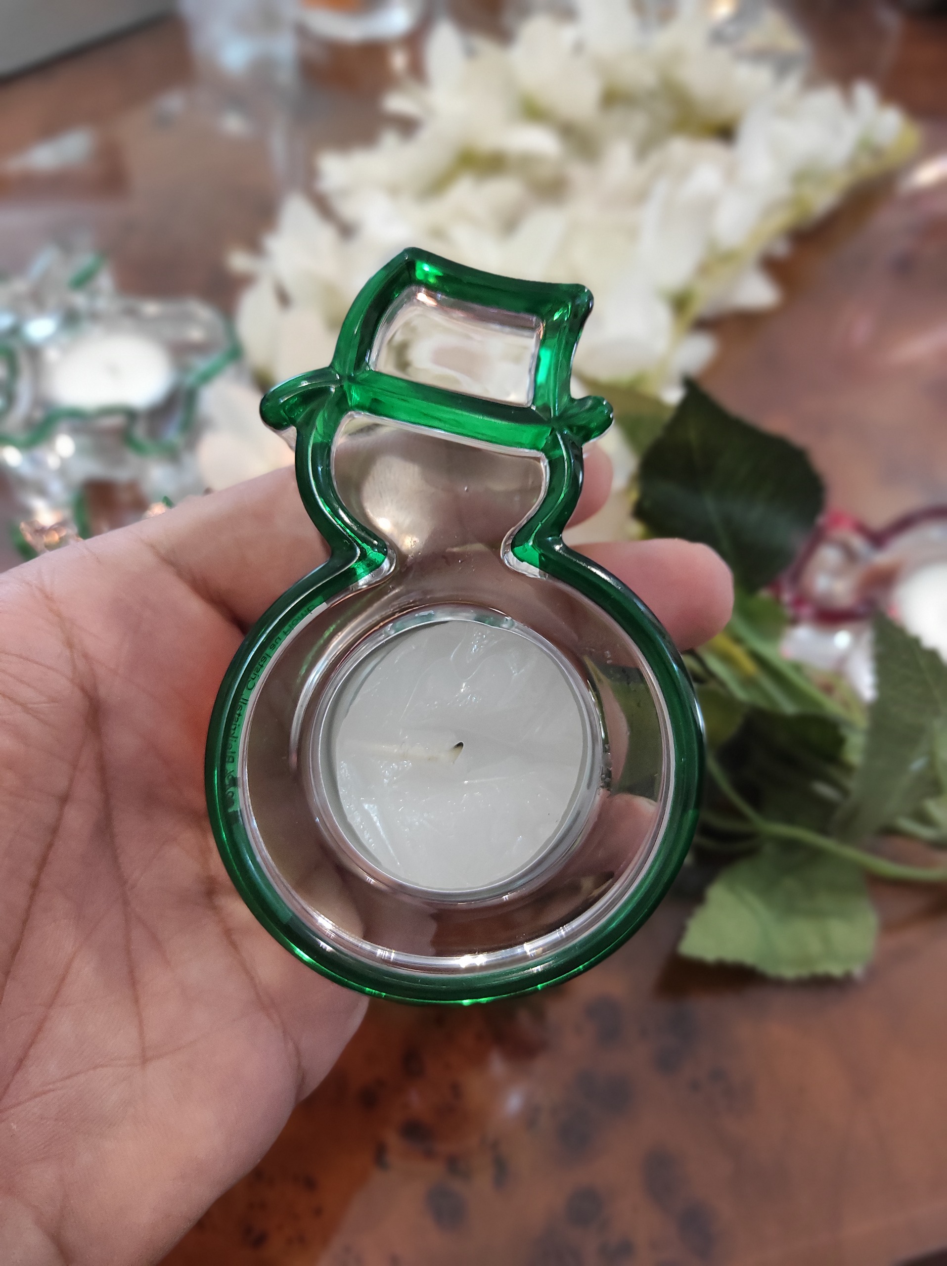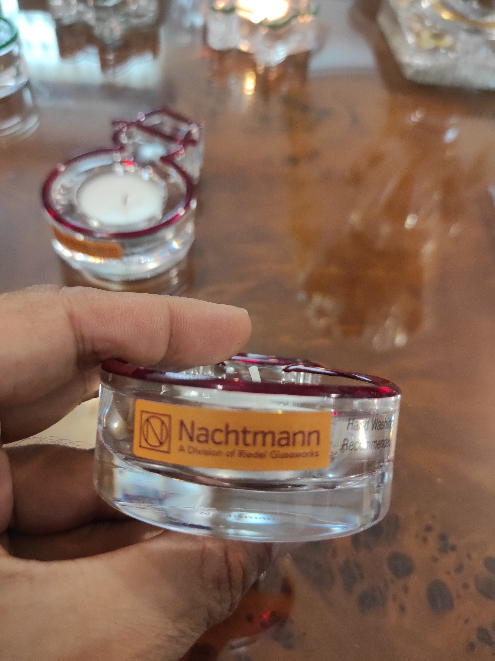 شمعدان برند ناخمن آلمان دارای هک لیزری کریستال اصل در دو رنگ قرمز و سبز . شناسنامه دار دارای جعبه اورجینال