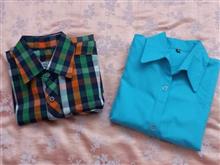 پیراهن آبی سالمه و پیراهن چها خانه درزش باز شده برای همین میزنم معیوب که حرفی درش نباشه.
