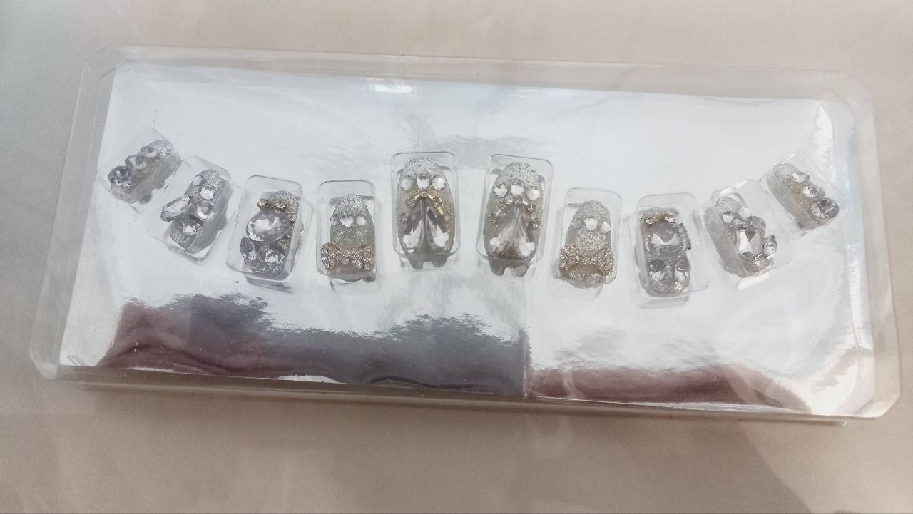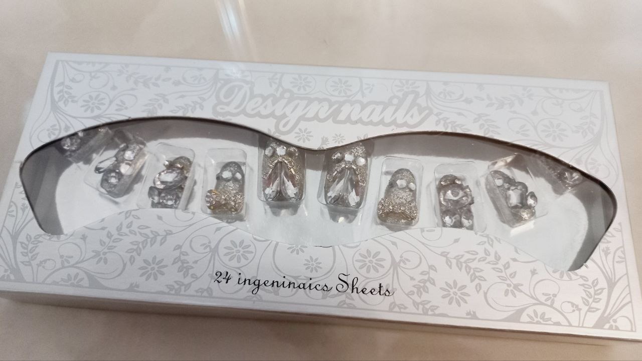 دارای 10 عدد ناخن نگین دار و 14 عدد ناخن طراح دار