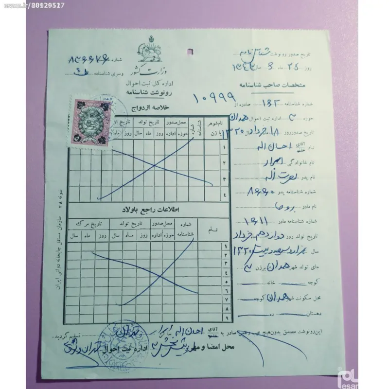 برگ ثبت احوال بابت رونوشت شناسنامه و خلاصه ازدواج