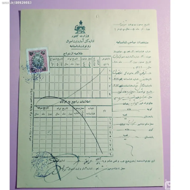 برگ ثبت احوال بابت رونوشت شناسنامه و خلاصه ازدواج