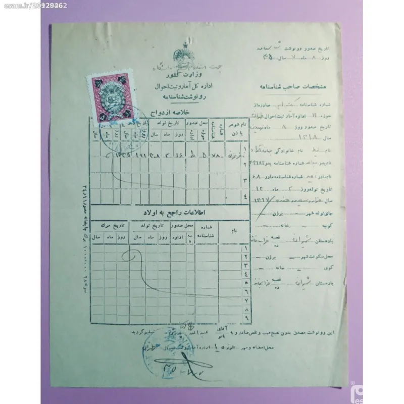 برگ ثبت احوال بابت رونوشت شناسنامه و خلاصه ازدواج