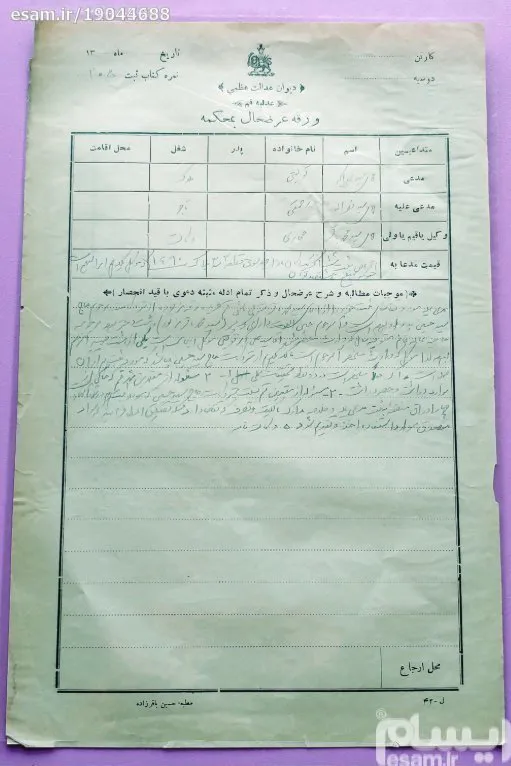 ورقه عرضحال بحکمه بسیار ارزشمند به سال 1317