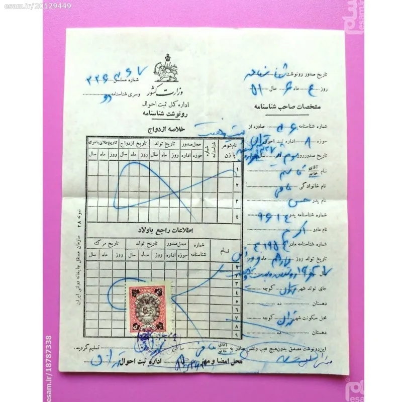 برگ ثبت احوال بابت رونوشت شناسنامه و خلاصه ازدواج