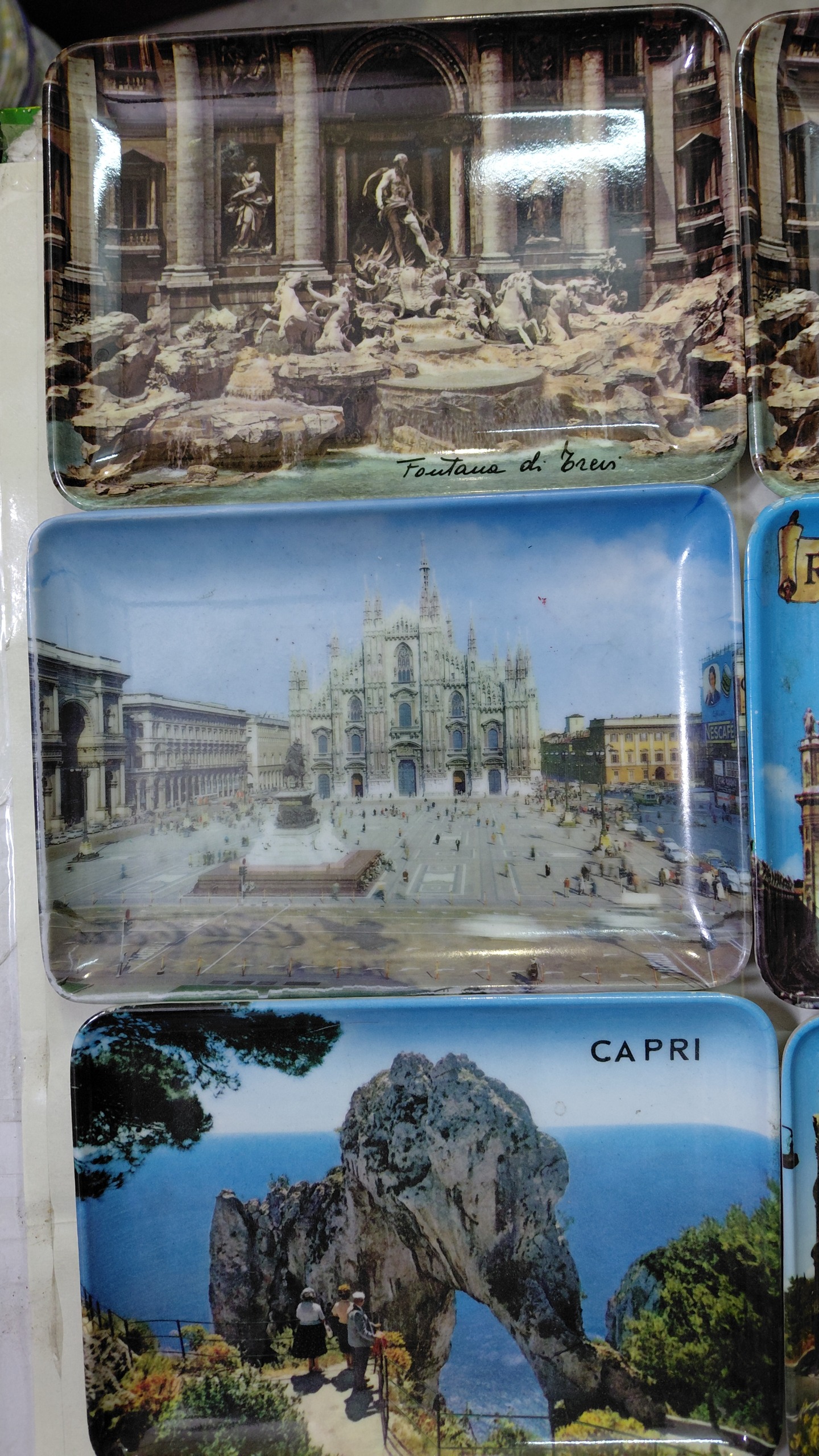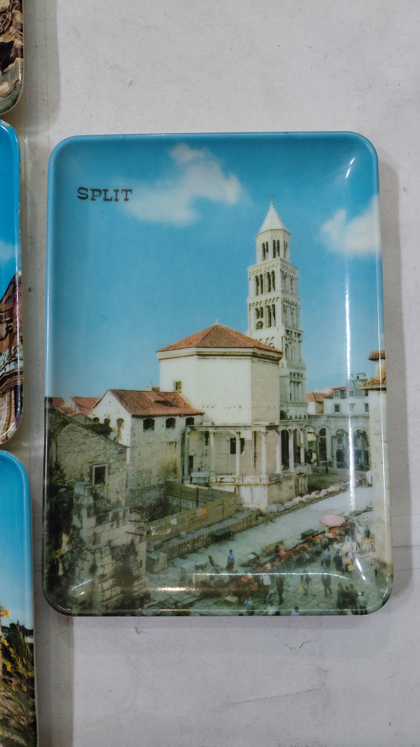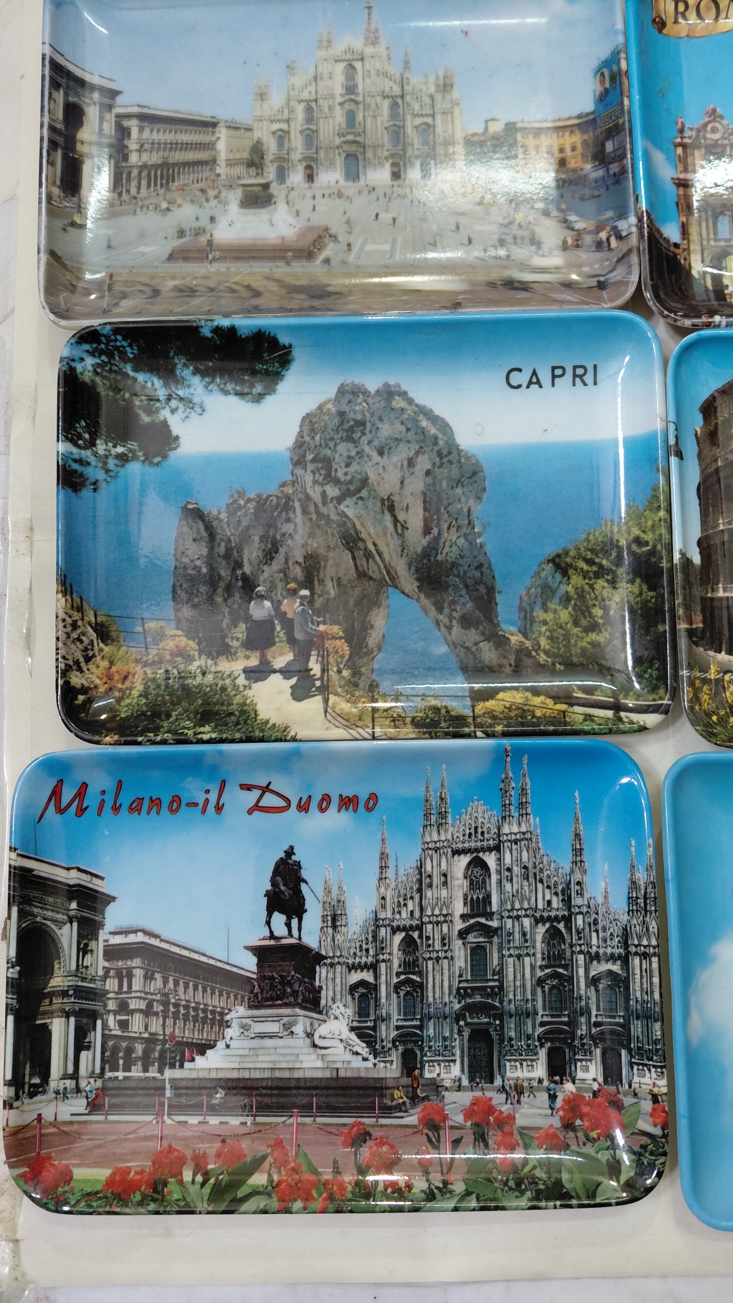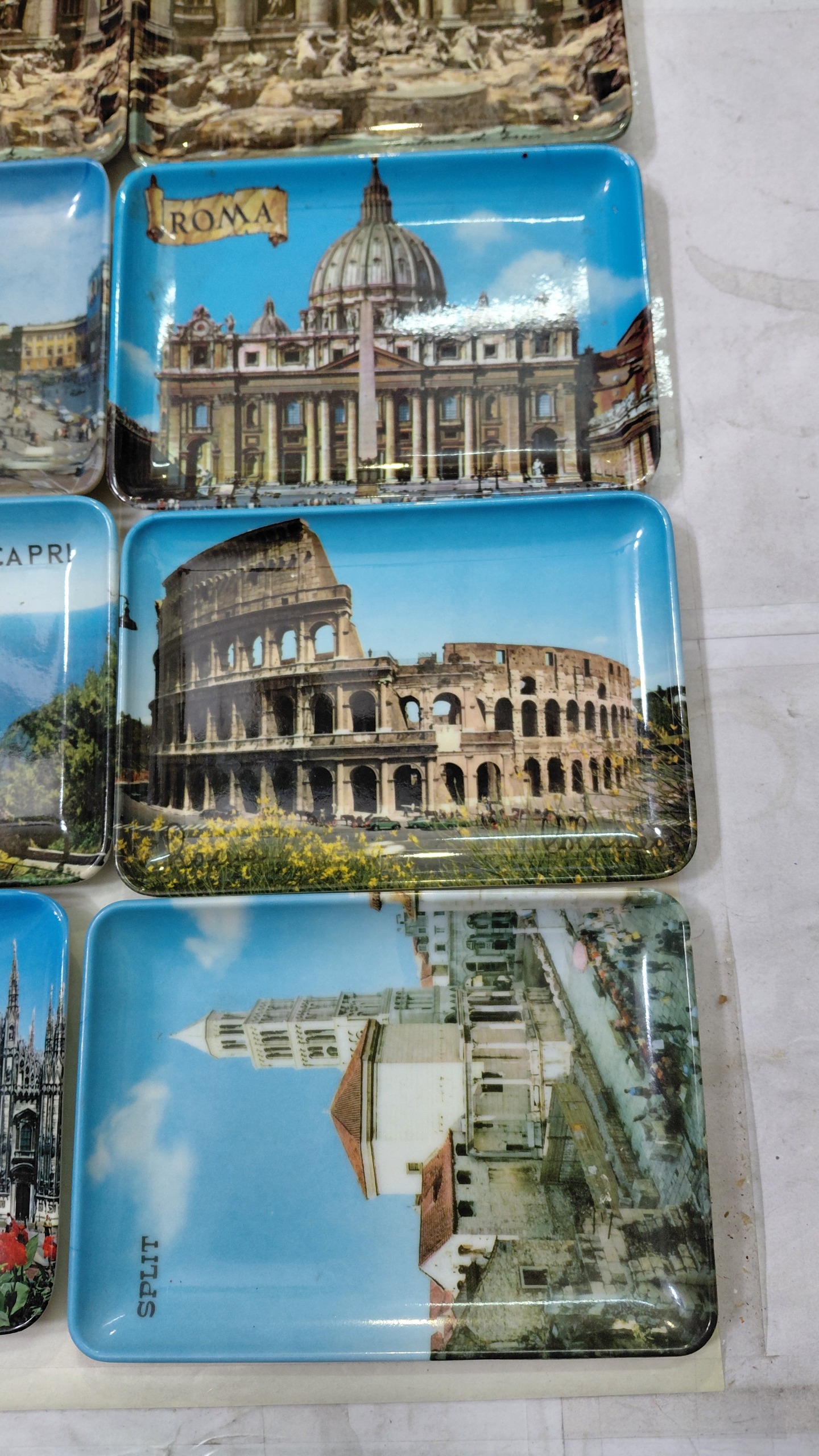 تعداد 8 عدد سینی ملامین ایتالیایی قند پهلو با نقش آثار باستانی از اماکن تاریخی کشور ایتالیا در ابعاد 10×15سانت.فروش باهم