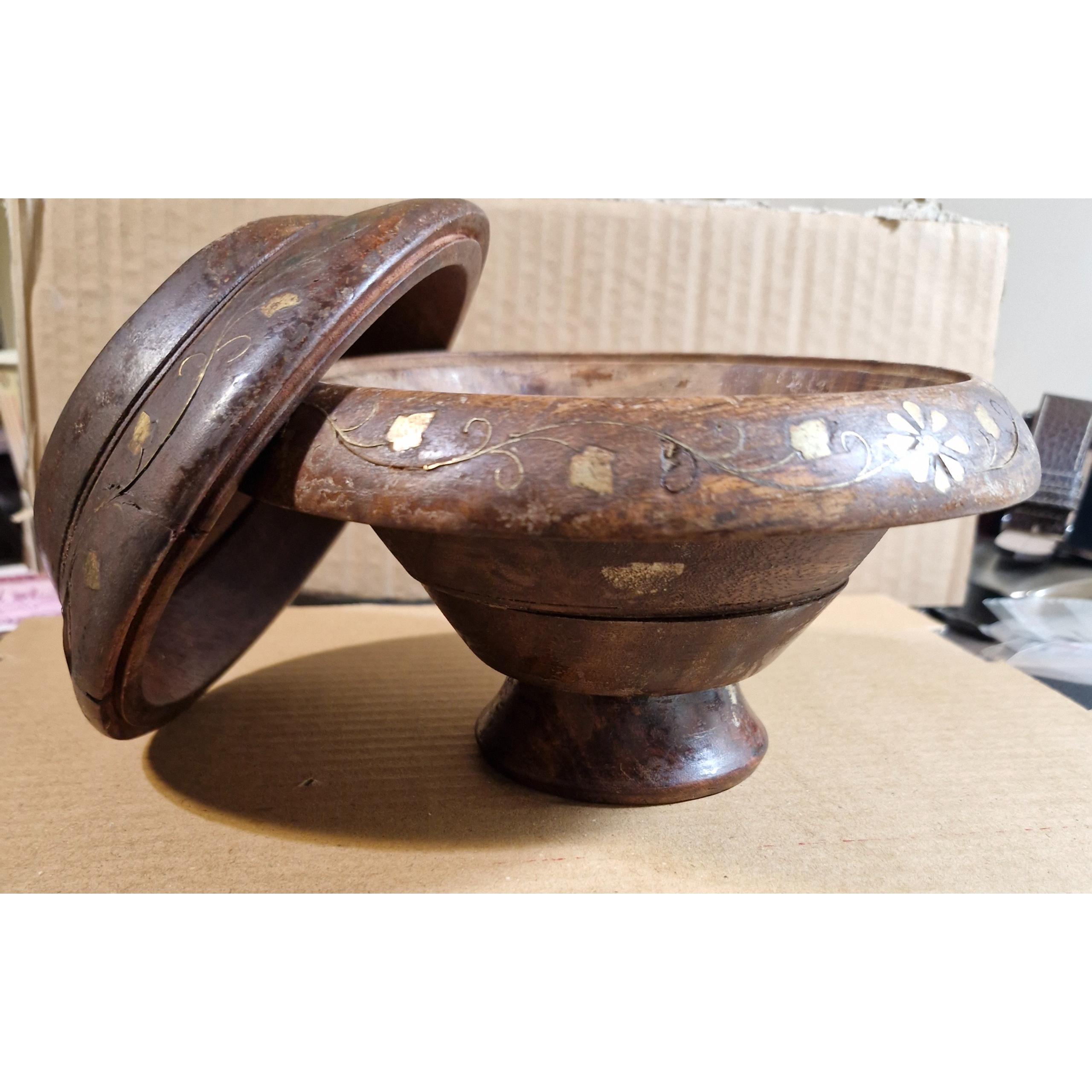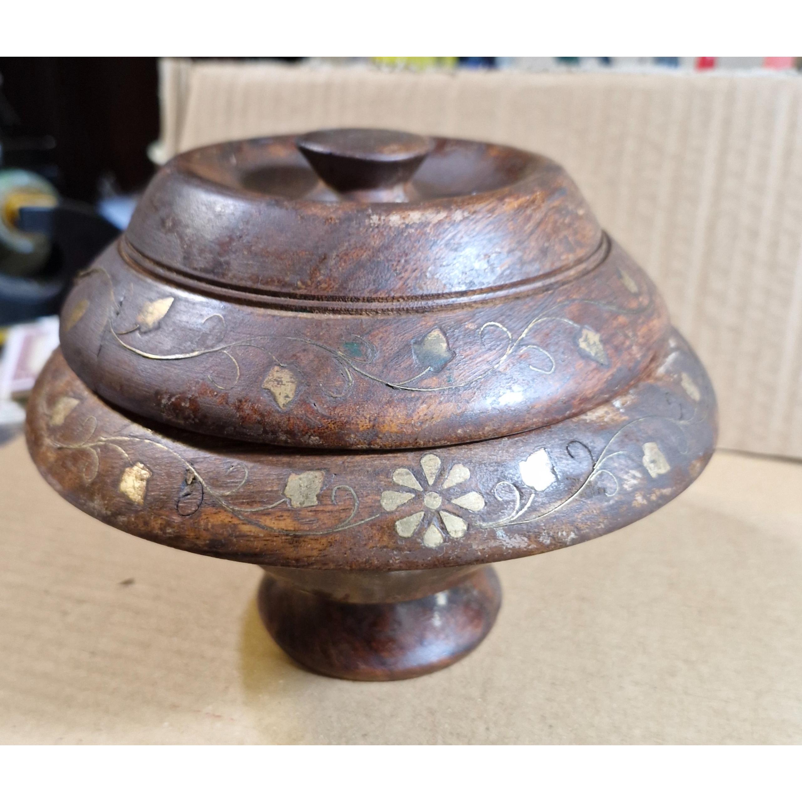 ظرف شکلات خوری چوبی برنجکاری قدیمی