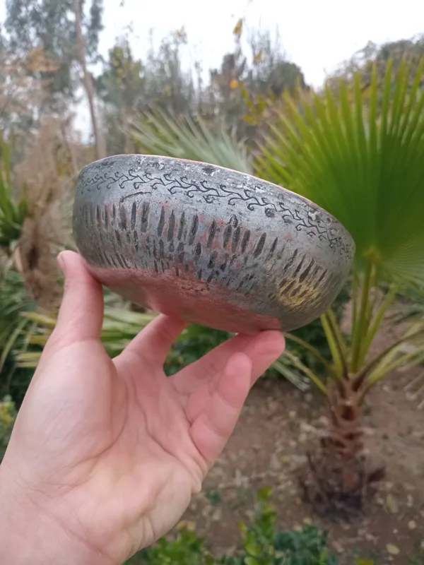 کاسه مسی چکشی قاجاری قلم قاجار سوهانکاری