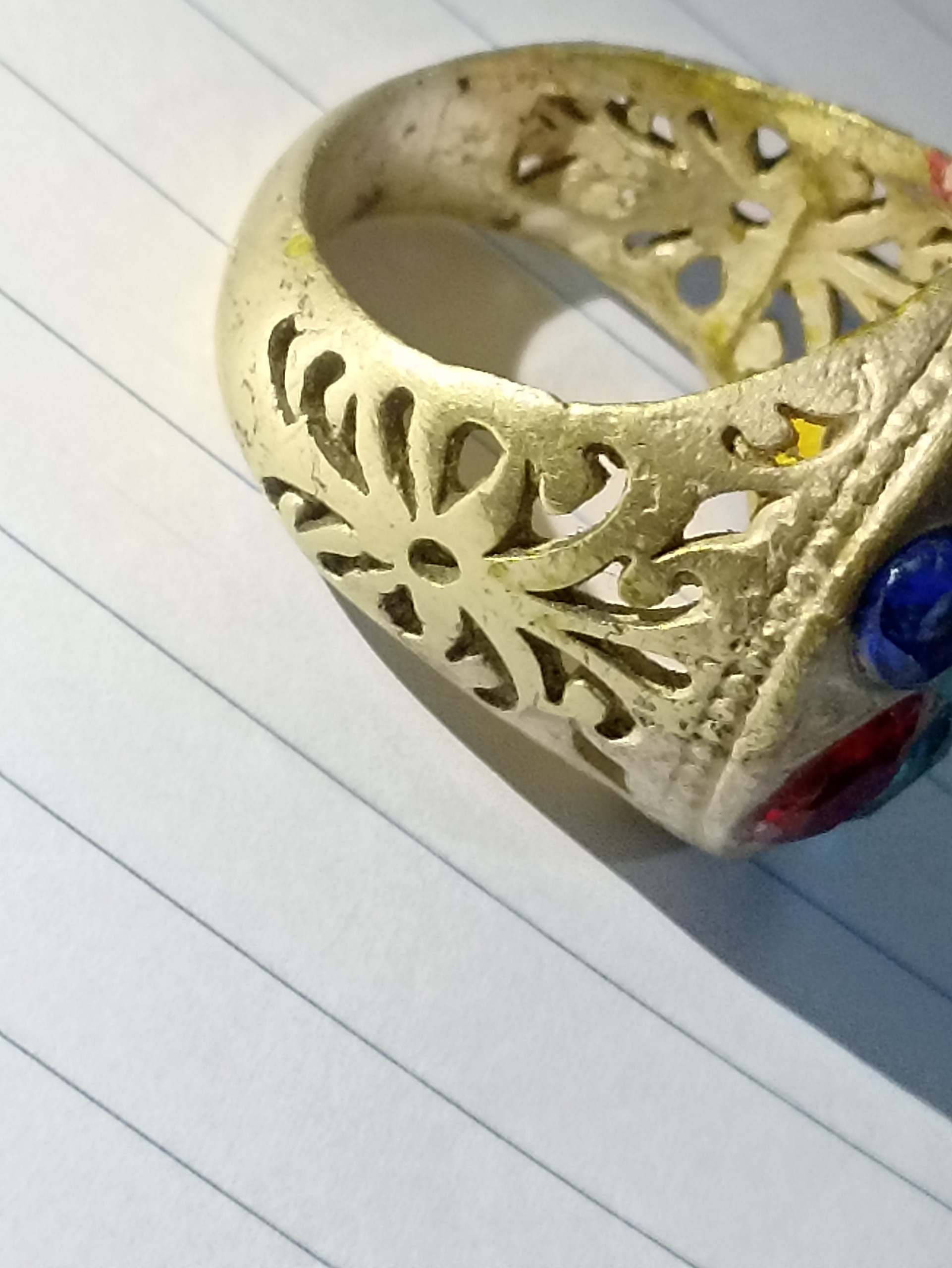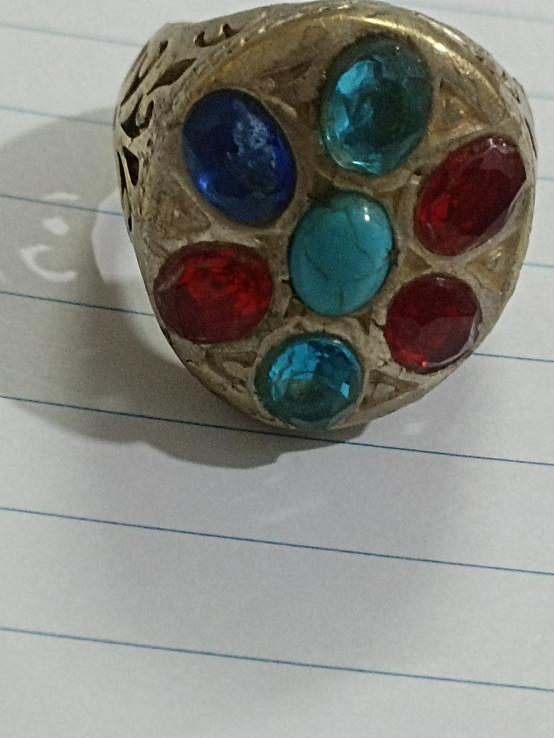 انگشتر خیلی بزرگ و سنگین جواهری یک قسمت ازش رنگش بخاطر ریختن اسید یکم رنگش پرید