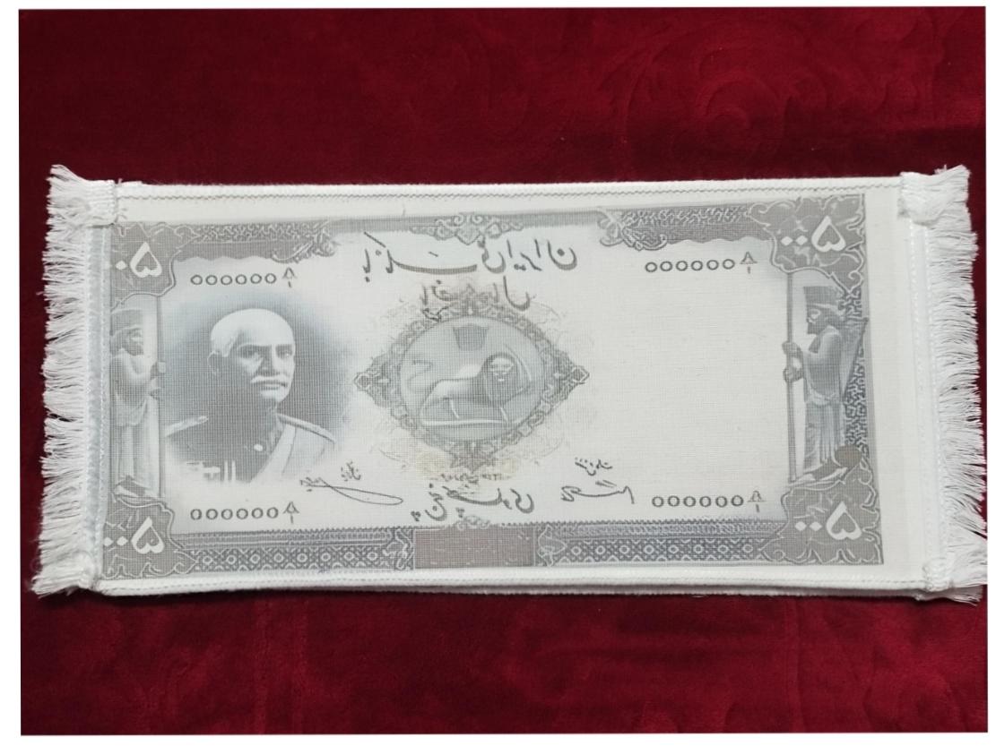 قالیچه طرح اسکناس پرینت شده روی فرش ماشینی