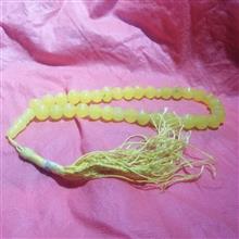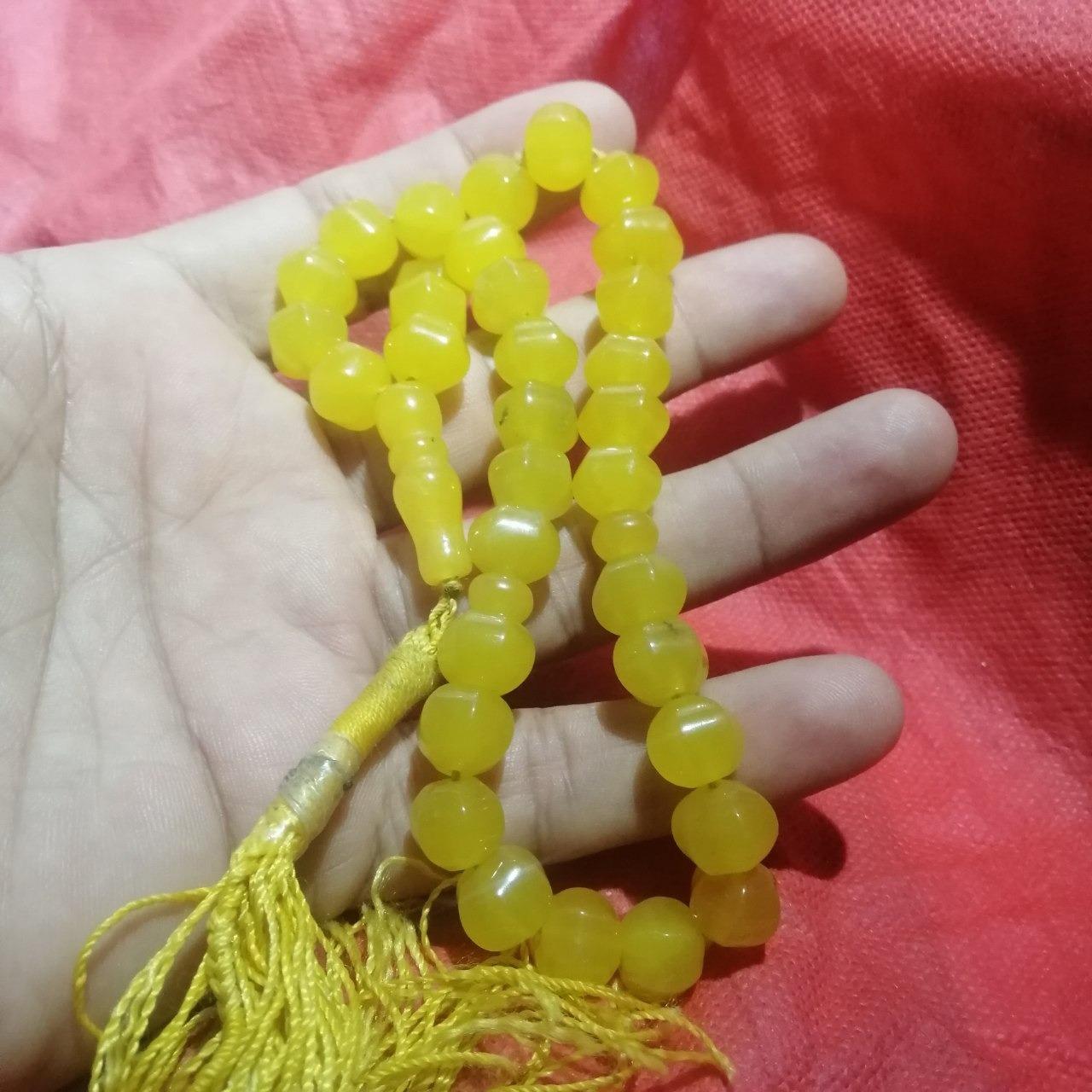 تسبیح سنگ عقیق زرد 33 دانه و دو عدسک و شیخک سالم