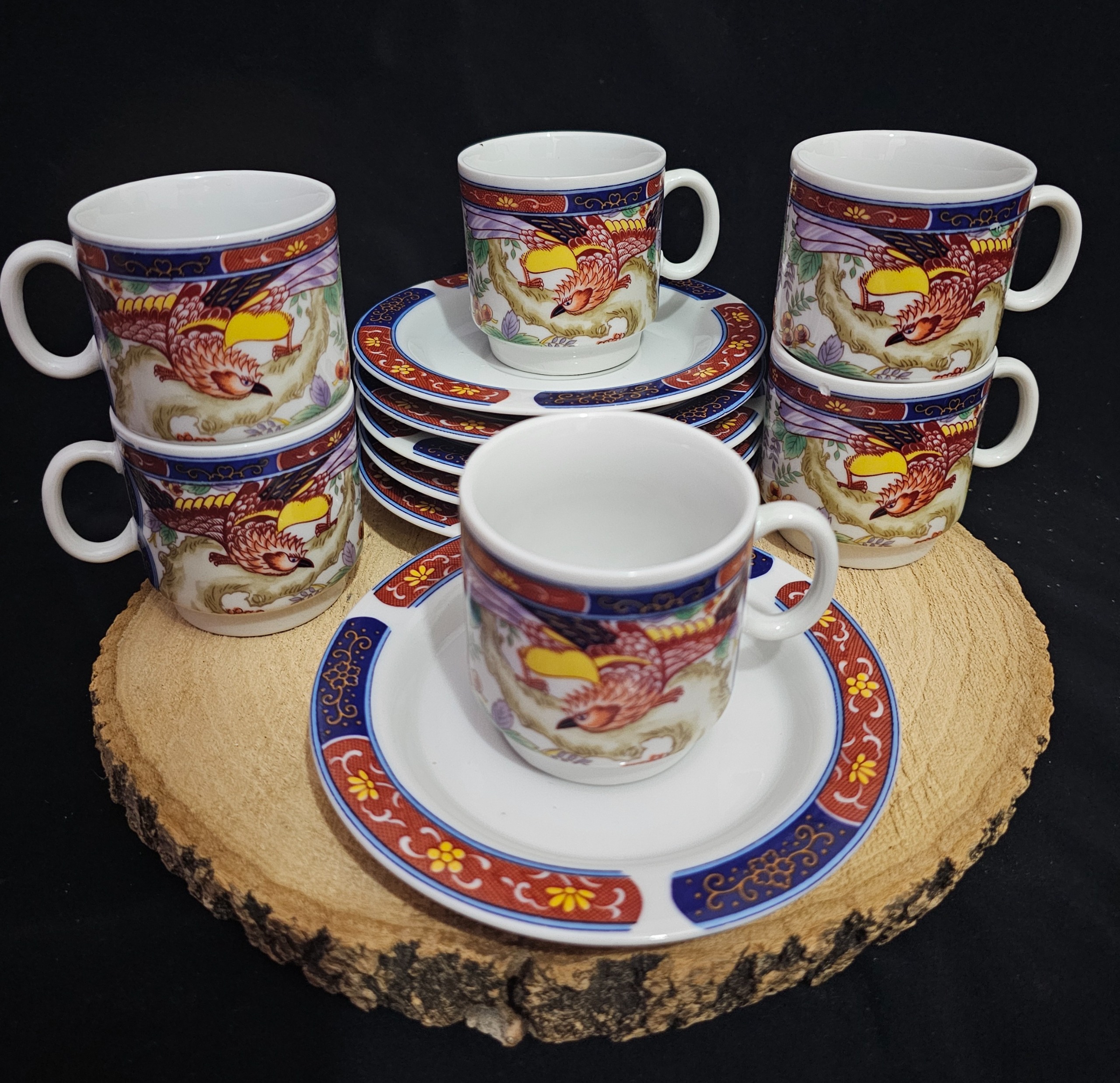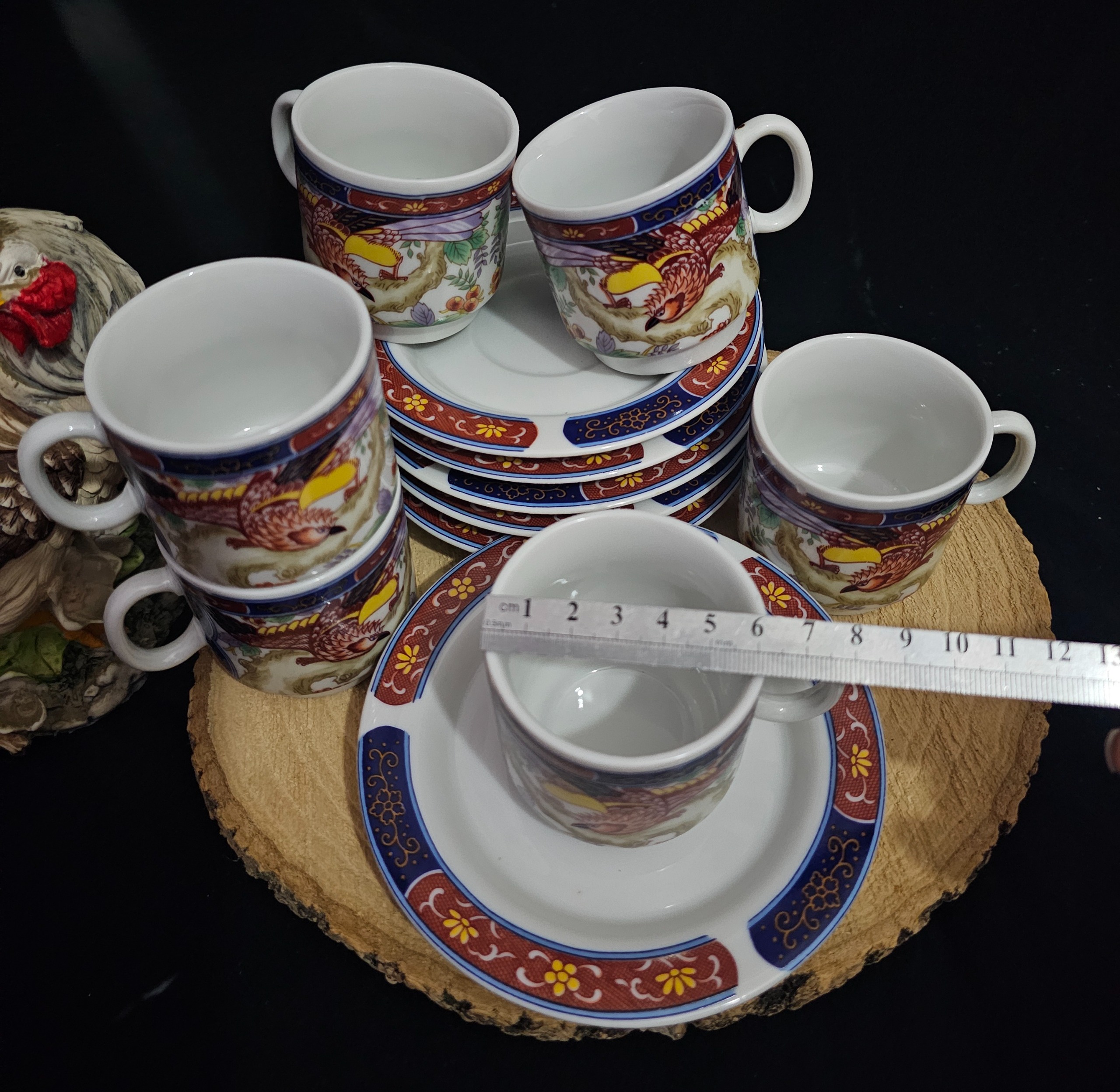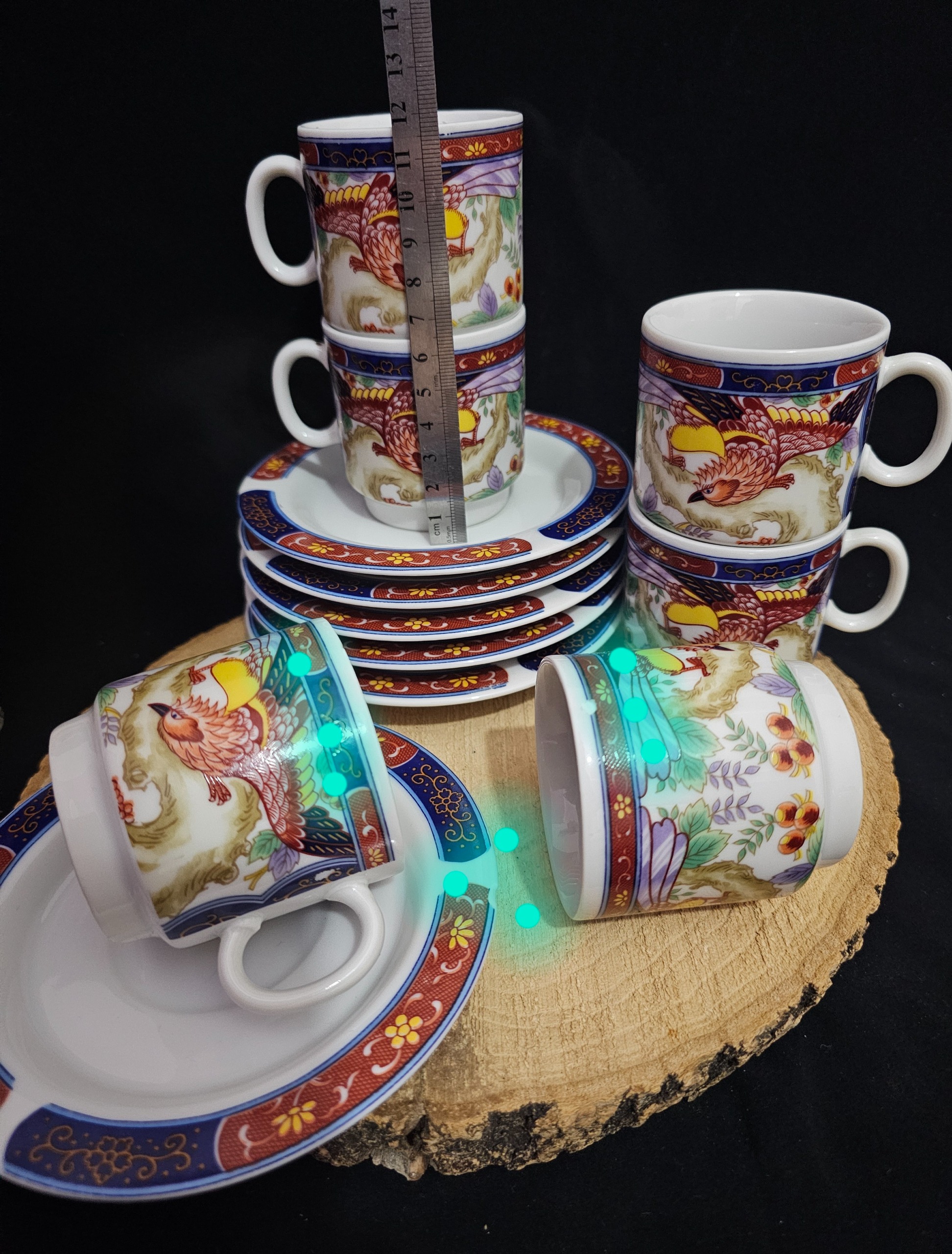 قیمت ذکرشده برای یک دست میباشد___6فنجان 6نعلبکی مدل سیمرغ ژاپن مارک معروف بهشتی همگی یک مارک (دوفنجان پریدگی جزئی یکی لبه ویکی روی فنجان وبه سختی درتصویر مشخص میشه ؛یک نعلبکی پریدگی داره ودرتصویر برای دقت بیشتر با علامت مشخص شده باقی سالم کیفیت وابعاد دقیقا