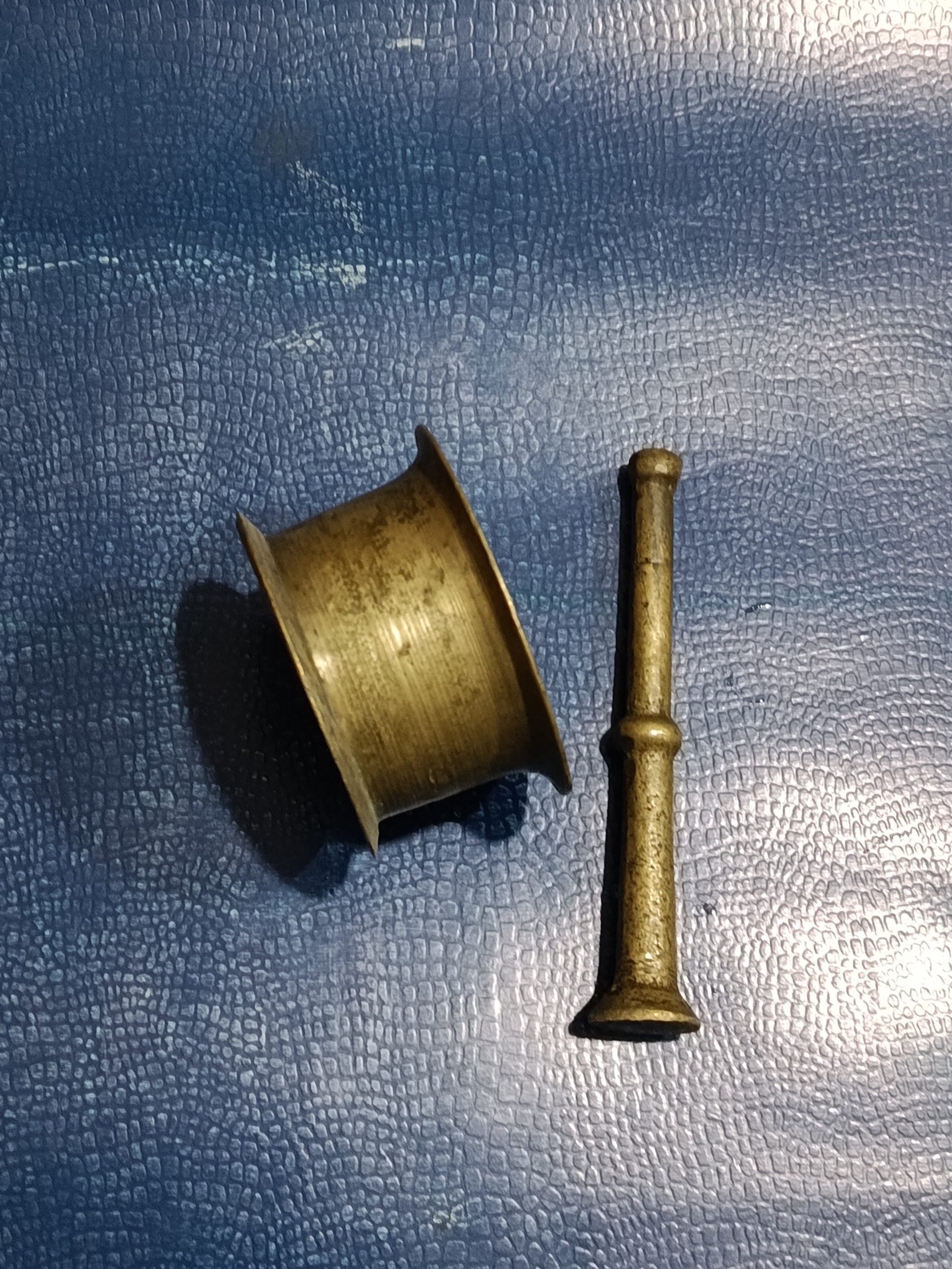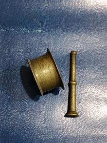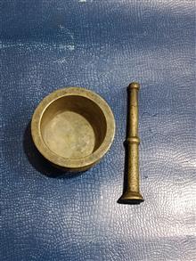 کیفیت مطابق تصویر .جنس برنج و قدیمی .ارتفاع هاون 4 و قطر 8 سانت .سایز دسته 12 سانت و وزنش 340 گرم