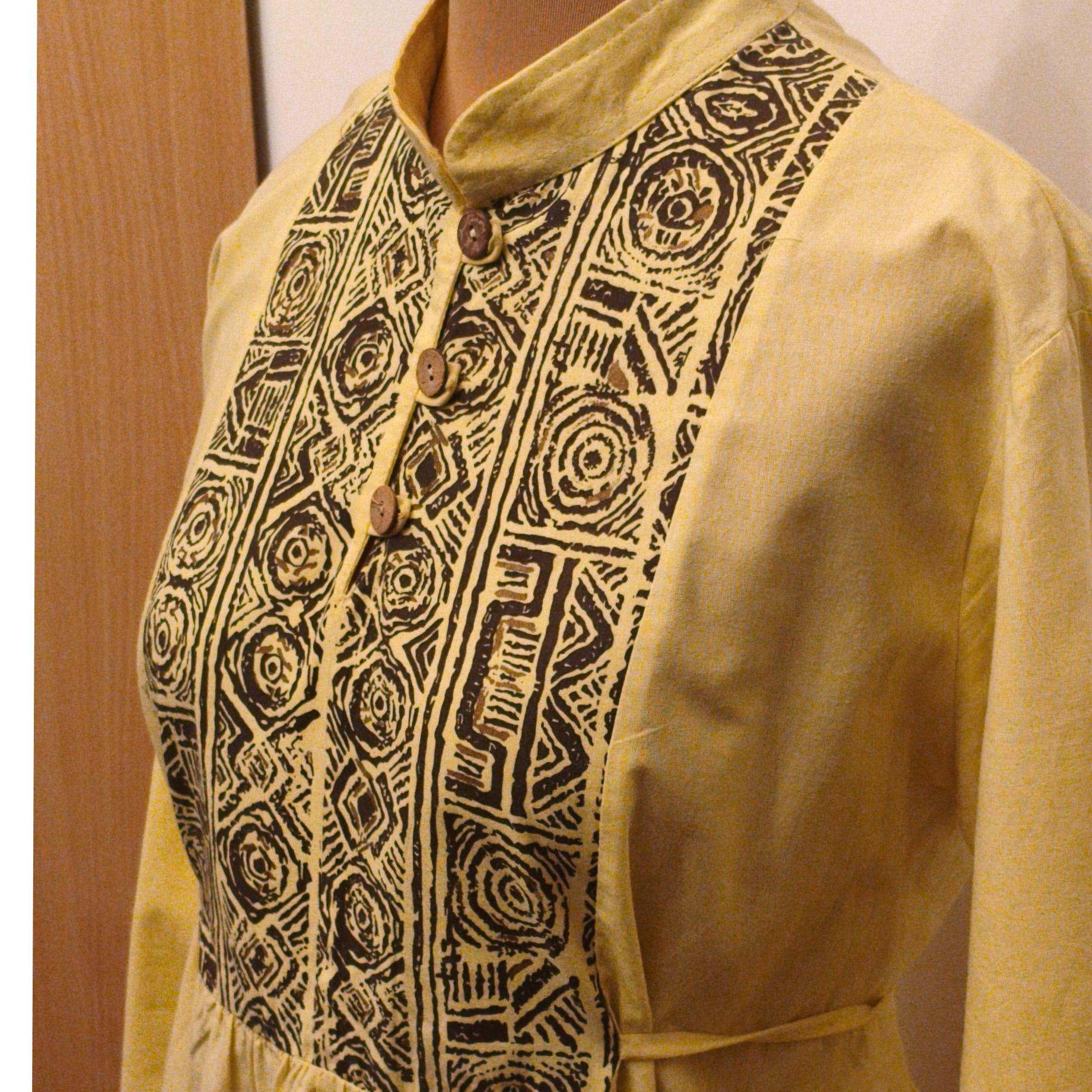 بند کمر دارد که در پشت گره میخورد