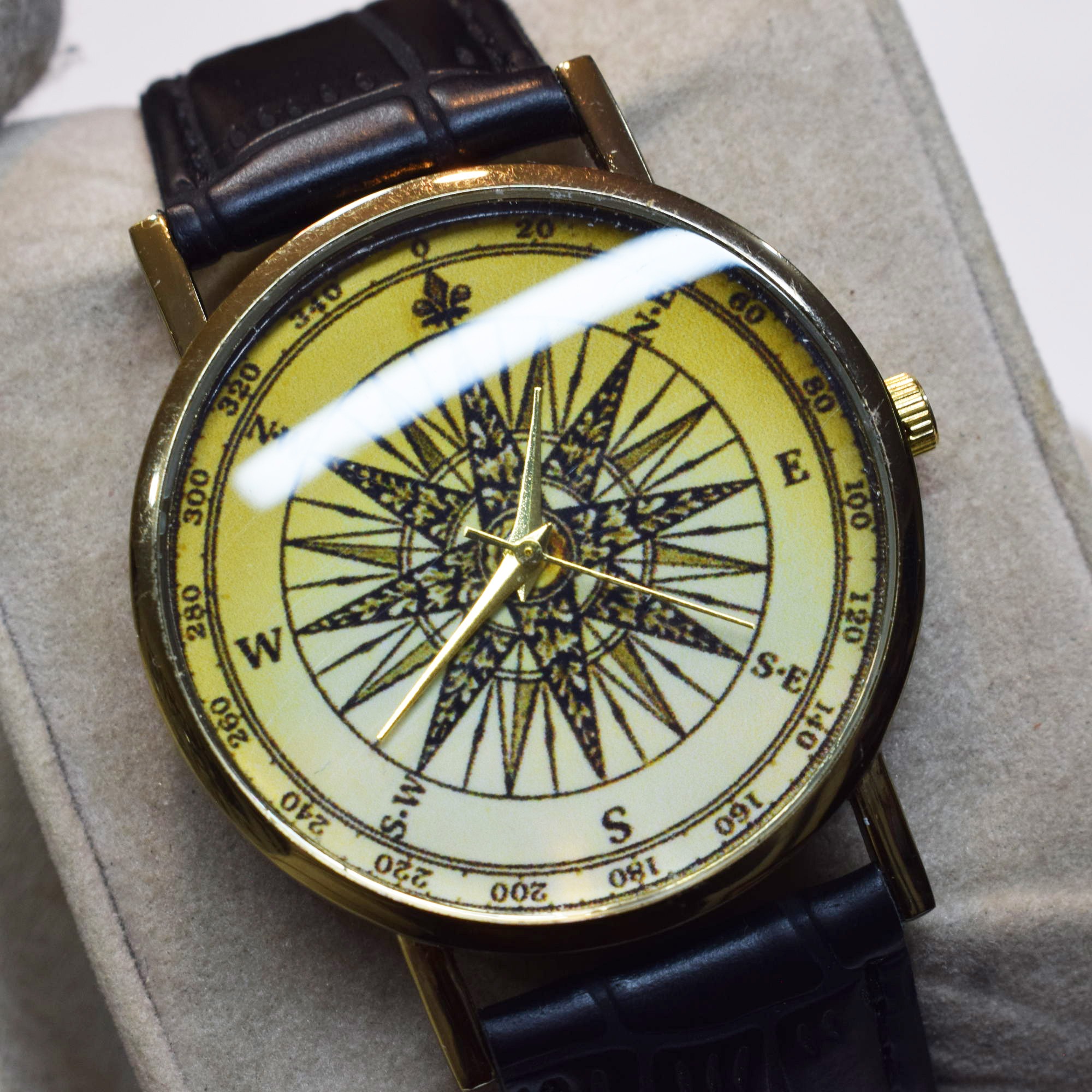 حراجی ساعت جذاب سبک قطب نمایی بند چرم