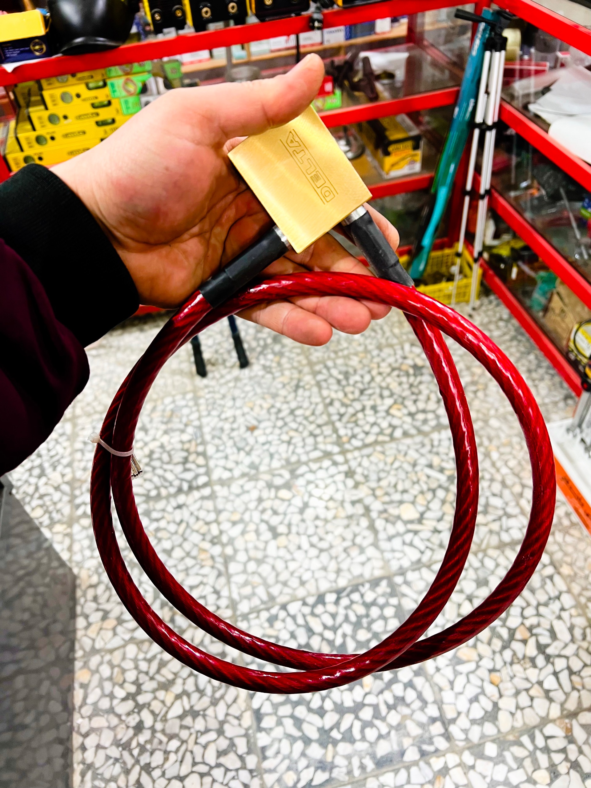 قفل سیم بکسلی 150cm با قفل تماما برنج از برند با اصل و نسب دلتا
