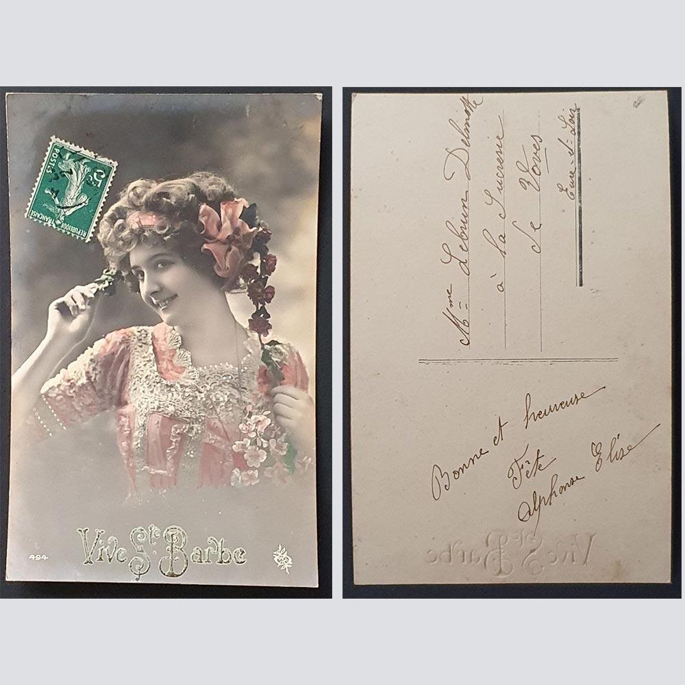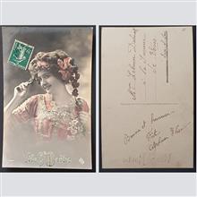 کارت تمبردار آنتیک فرانسه پرتره مد گل 1