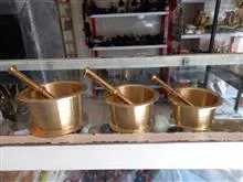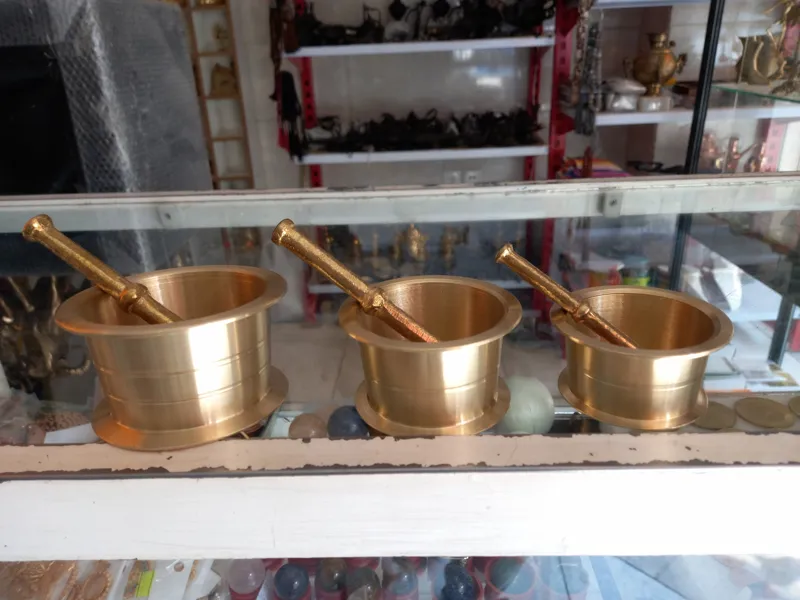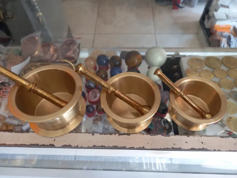 ست 3تایی هاونگ برنجی با کیفیت عالی رنگ ثابت دکوری وقابل استفاده اندازه دهنه از کوچیک 6/5