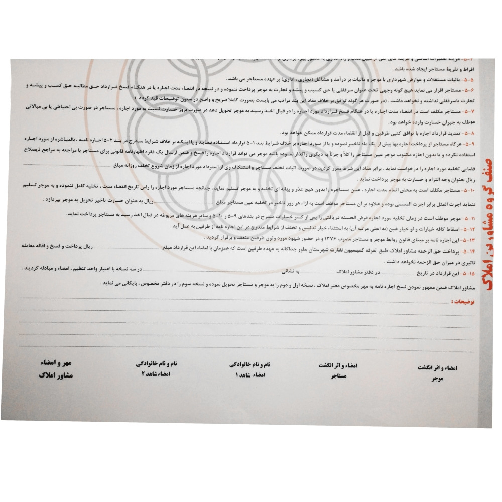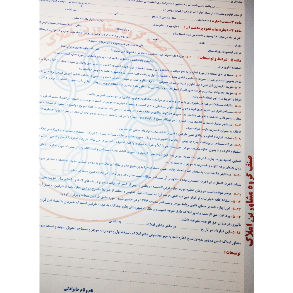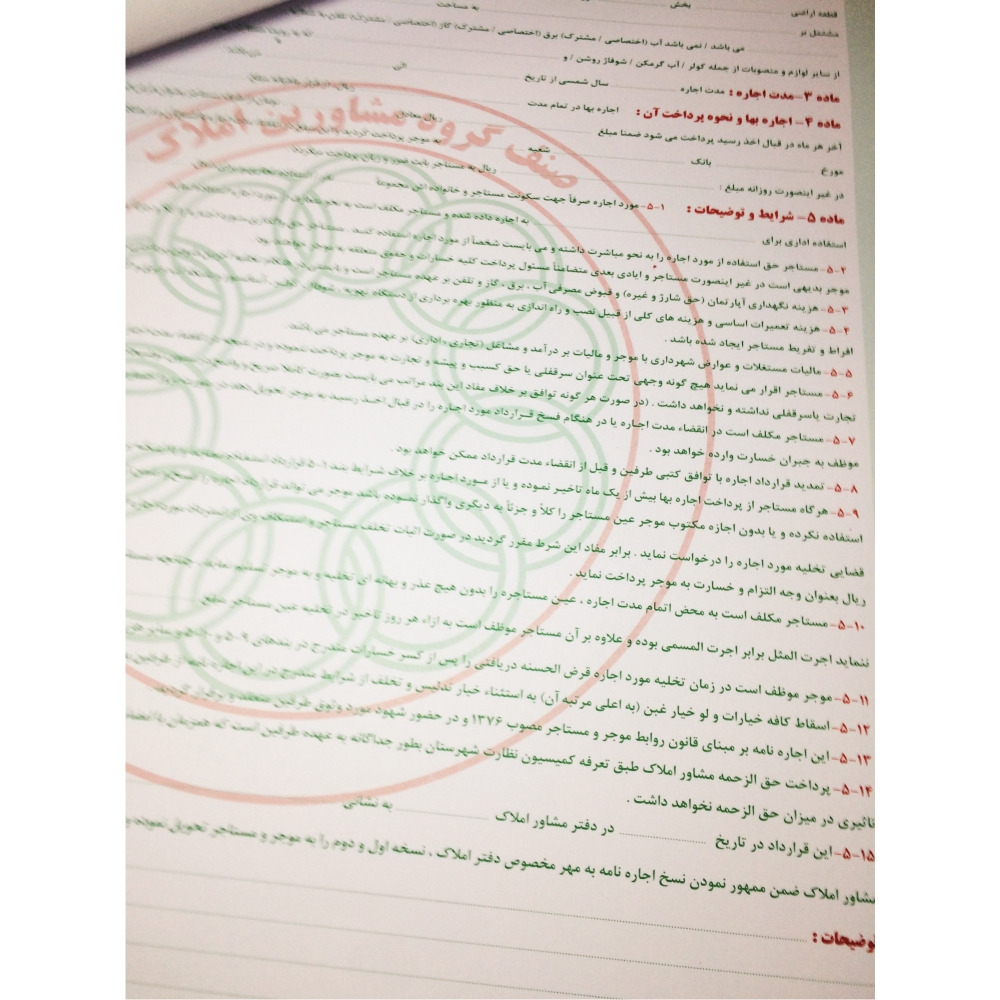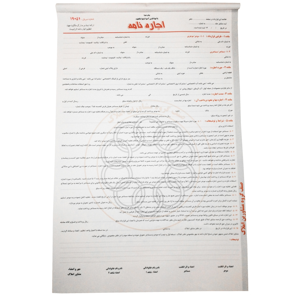 این اجاره نامه دارای کاغذ تحریر 80 گرم می باشد و شماره گذاری این اجاره نامه با رنگ قرمز چاپ شده است.