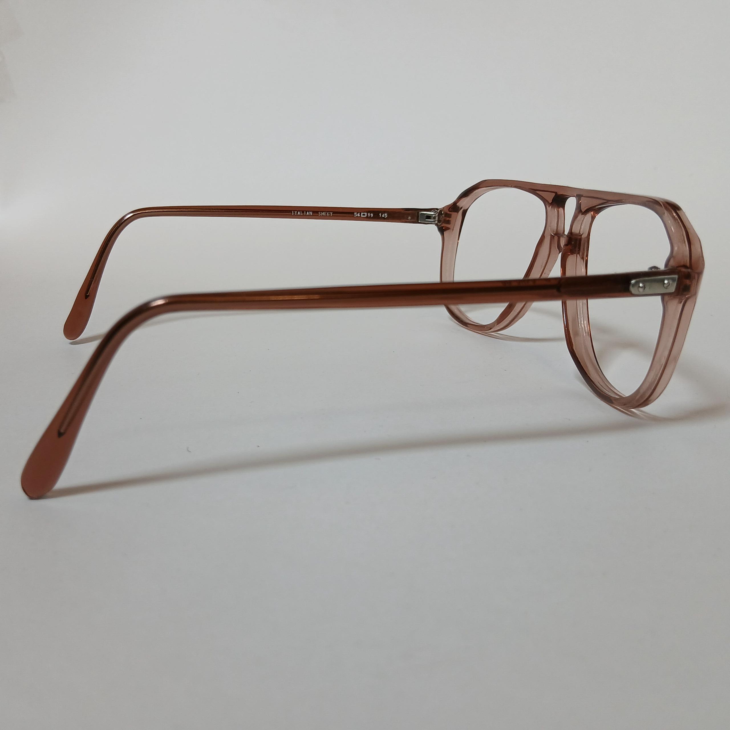 اگر چه بیش از 40 سال از ساخت این عینک میگذرد، اما این فریم کاملا سالم هست . در ویترین و سالها در انبار بوده،نو و استفاده نشده  وهیچ مشکلی ندارد. اینکه عینک در حد نو قرار داده شده به دلیل گذشت زمان نسبتا طولانی و کاهش جلوه نو بودن هست .  این عینک ساخت ایتالیا است . از استات ساخته شده که علاوه بر مقاومت بیشتر باعث حساسیت نمیشود. رنگ آن ( اگر درست تشخیص داده باشم ) قهوهای خیلی روشن و شفاف است. اندازه های عینک به شرح زیر است:
