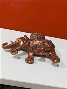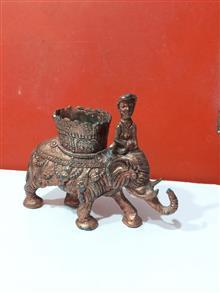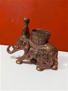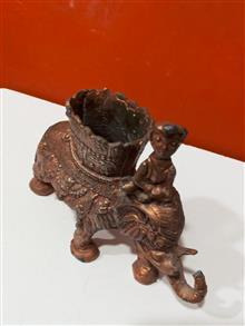 کیفیت مطابق تصویر .جنس فلز و احتمالا قلع و سرب هست .سنگین وزن و 550 گرم وزنشه .برای زیر سیگاری یا خلال دندان استفاده میشه .نوک خرطوم پریده گی دارد .ارتفاع 11 و طول 12 سانت .رنگش مسی رنگ هست