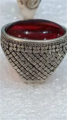 انگشتر نگین سرخ رکاب جوندار حراجی