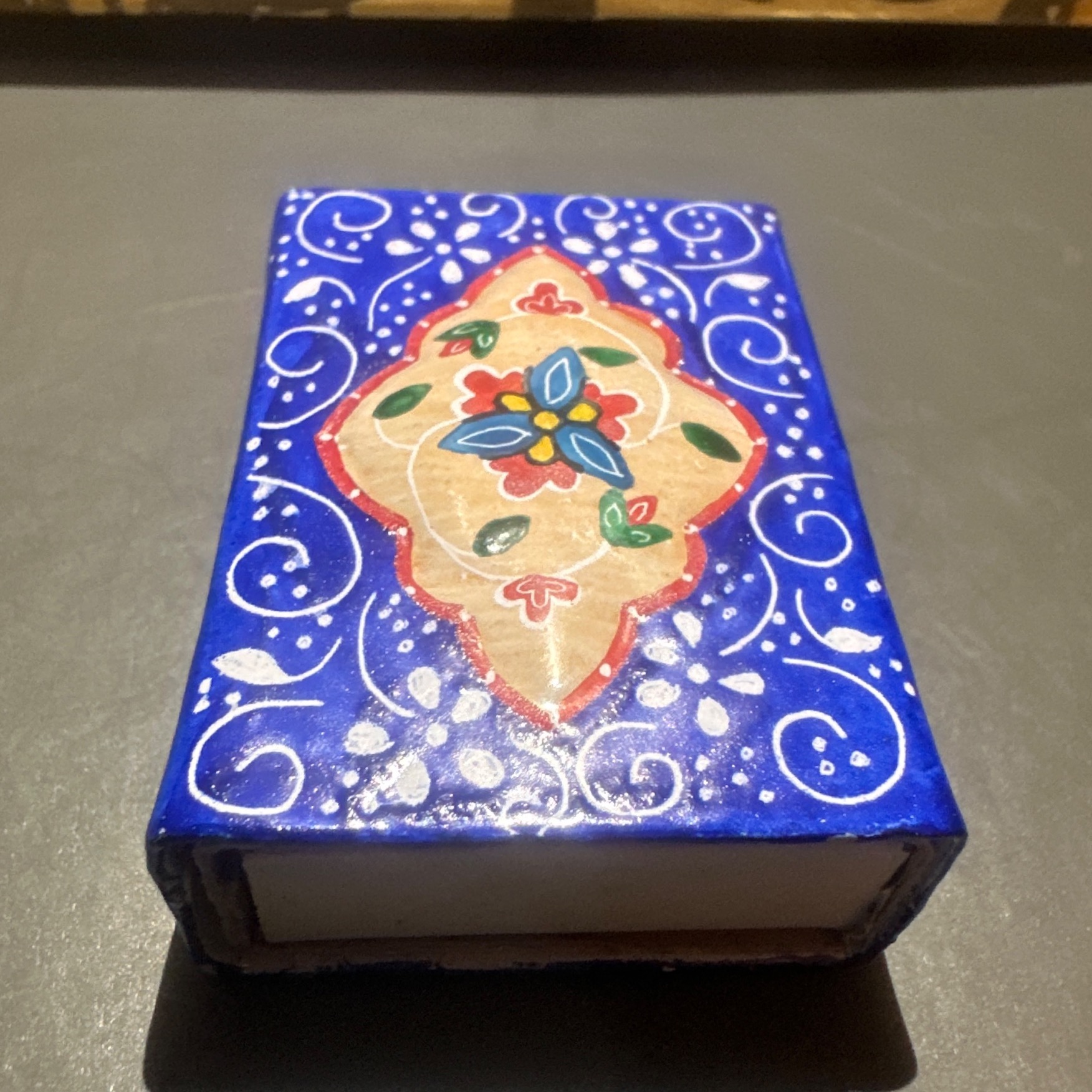 یک عدد جا کبریتی دست ساز مینا کاری آنتیک و زیبا .