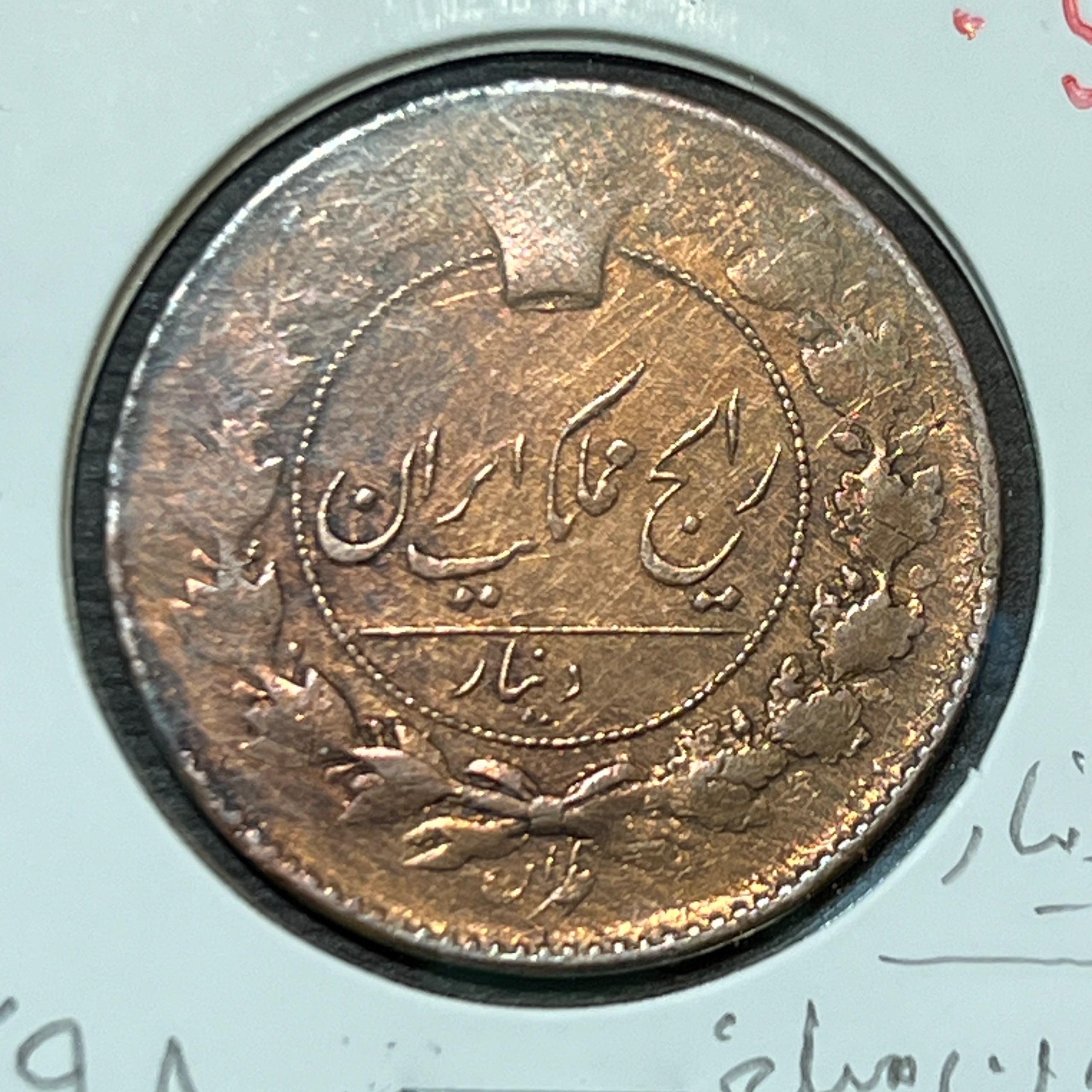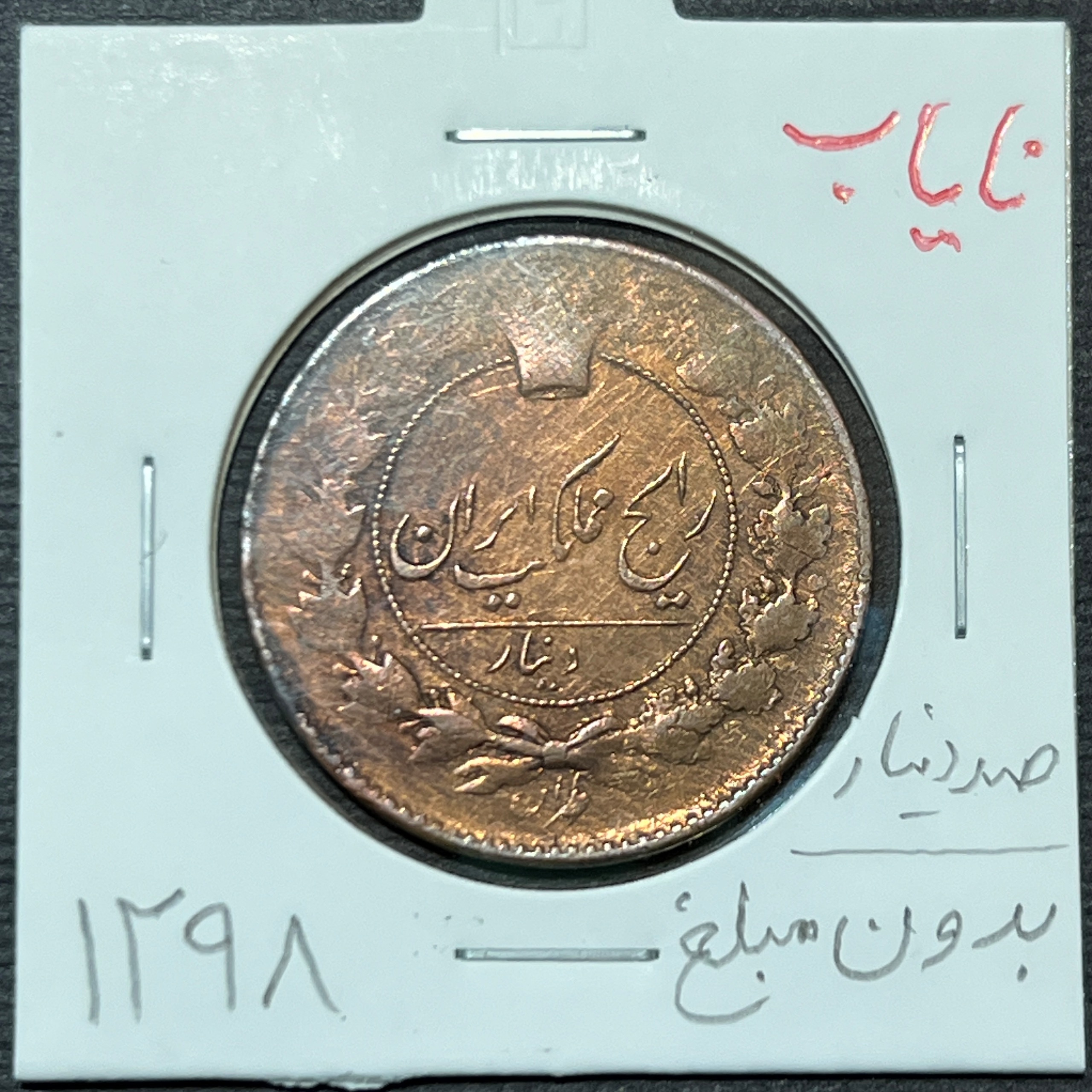 نایاب بدون مبلغ 100 دینار مسی ناصرالدین شاه