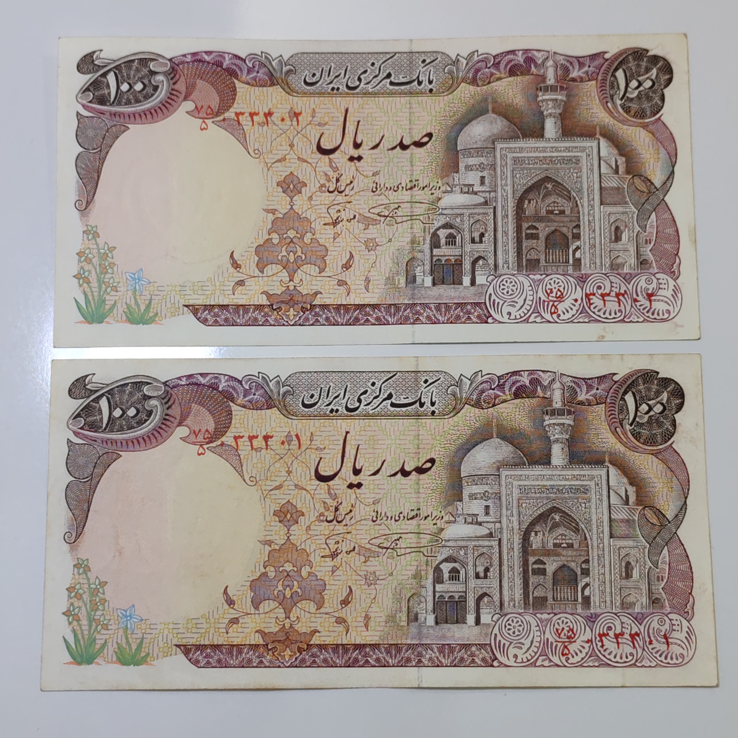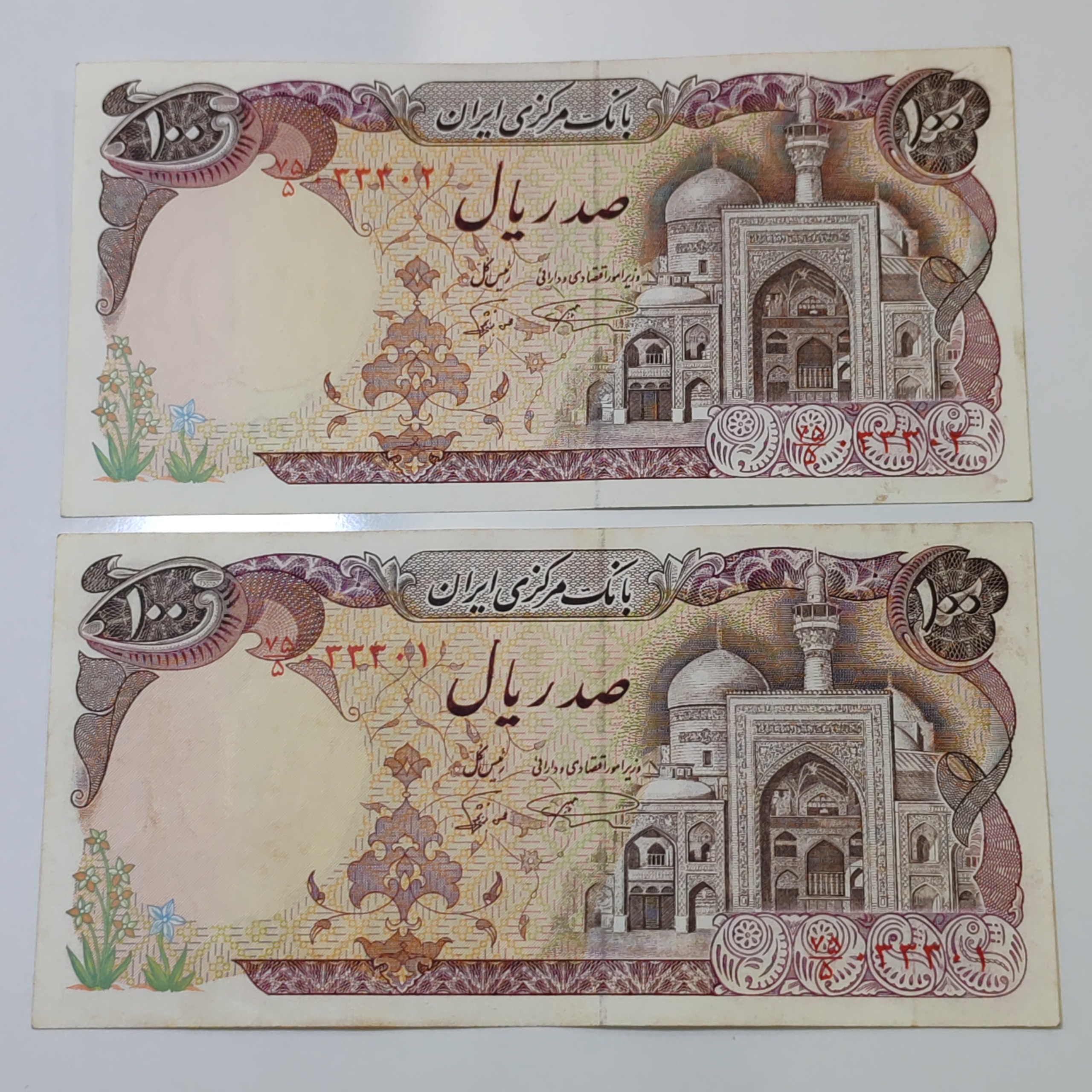 جفت اسکناس 100ریالی بارگاهی عالی نمازی نوربخش
