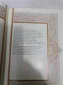 یک جلد کتاب گرانقدر دیوان حافظ کاغذ روغنی کلاسه براق انگلیسی و فارسی جلد چرم همراه جعبه وکاور