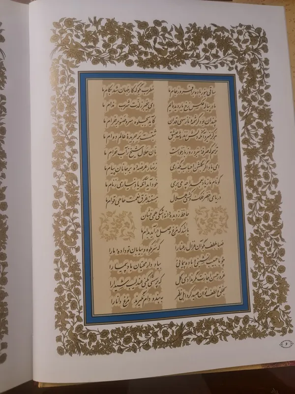 کتاب بسیار زیبا و ارزشمند دیوان حافظ شیرازی قطع رحلی بزرگ صفحات تمام رنگی و کلاسه روغنی همراه با جعبه وکاور مناسب برای هدیه