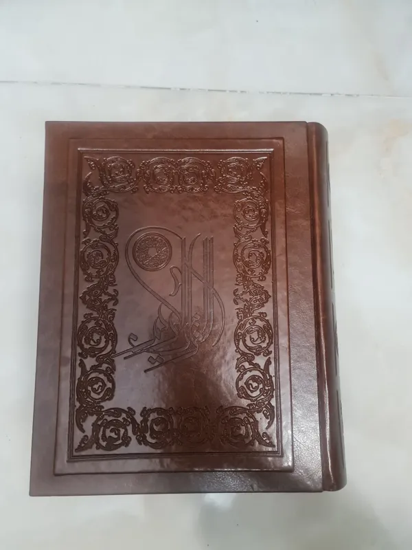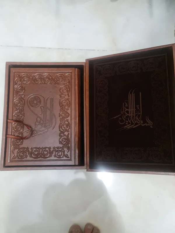 یک جلد کلام اله مجید قرآن بسیار نفیس مناسب برای هدیه ورق های طرح دار روغنی و رنگی همراه با جعبه مستحکم وزیبا