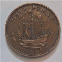 سکه هالف پنی بریتانیا (انگلیس) جرج شیشم 1937