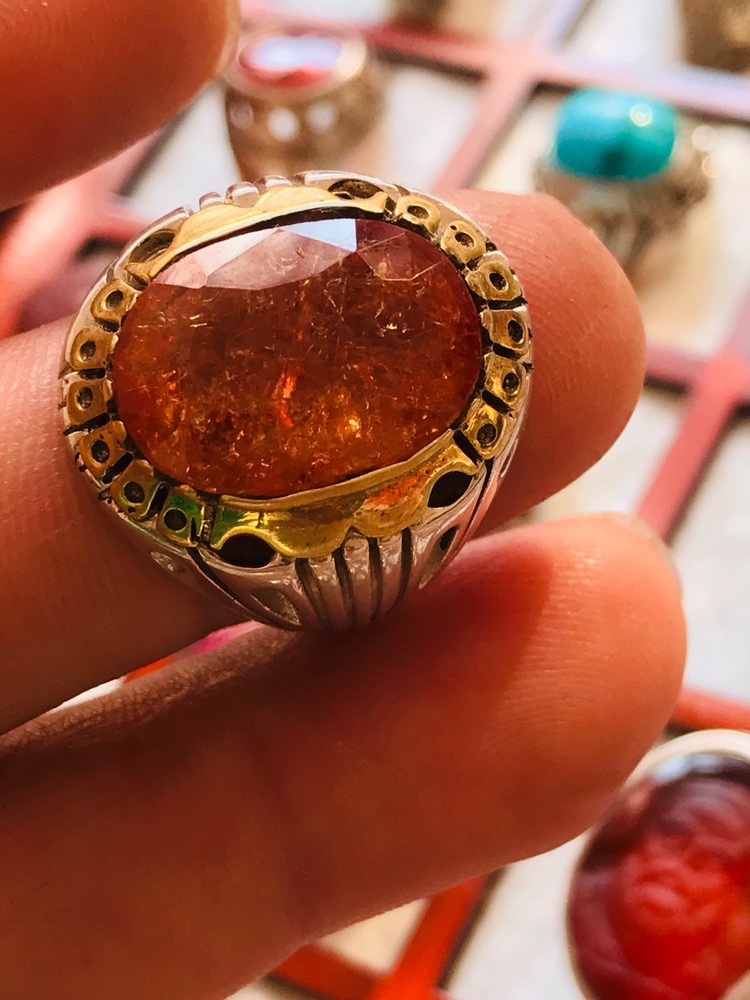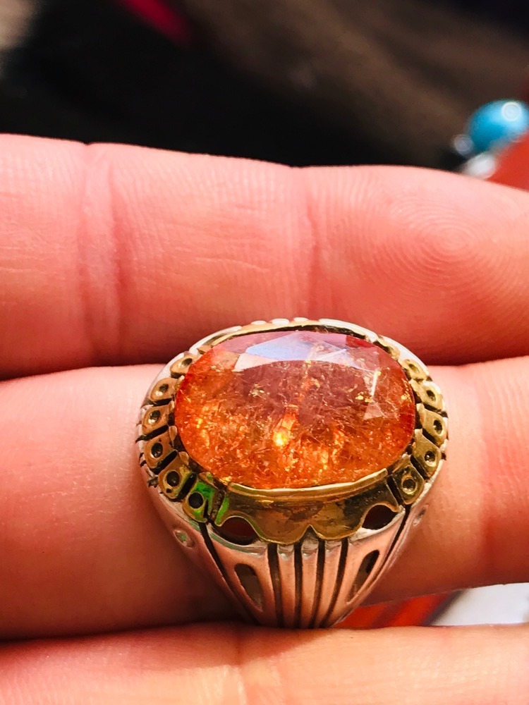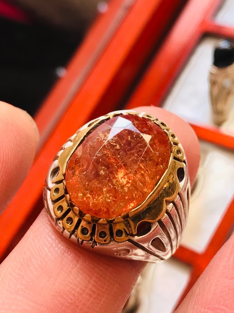انگشتر یاقوت پادپاراچا به وزن 20 گرم رکاب نقره 925 دستساز زنجان، وزن نگین 14 قیراط، سایز 62،63