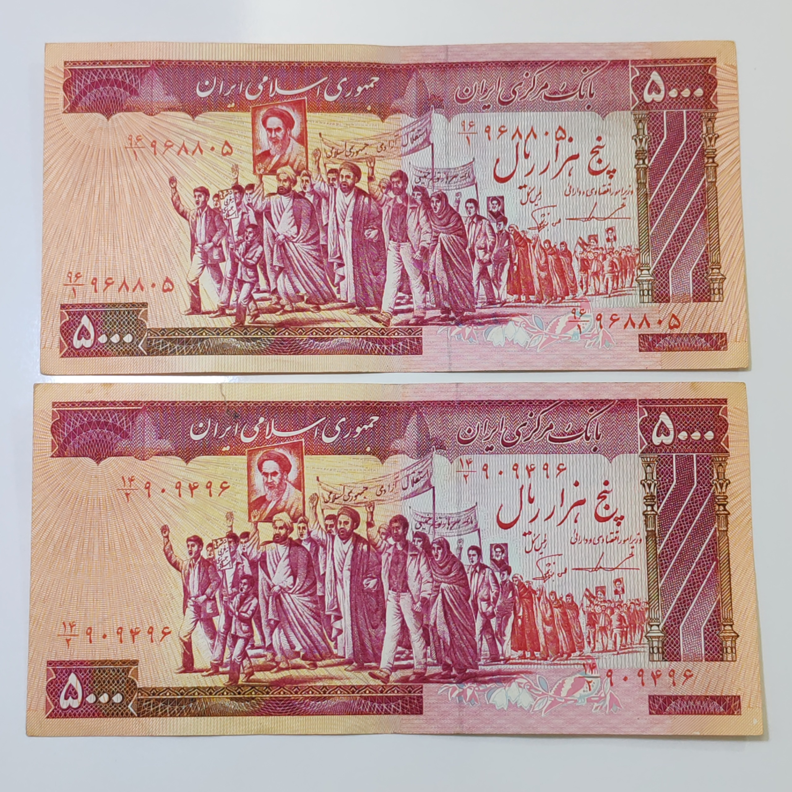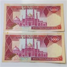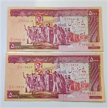 2برگ اسکناس 5000ریالی تظاهراتی امضا نایاب ایروانی نوربخش
