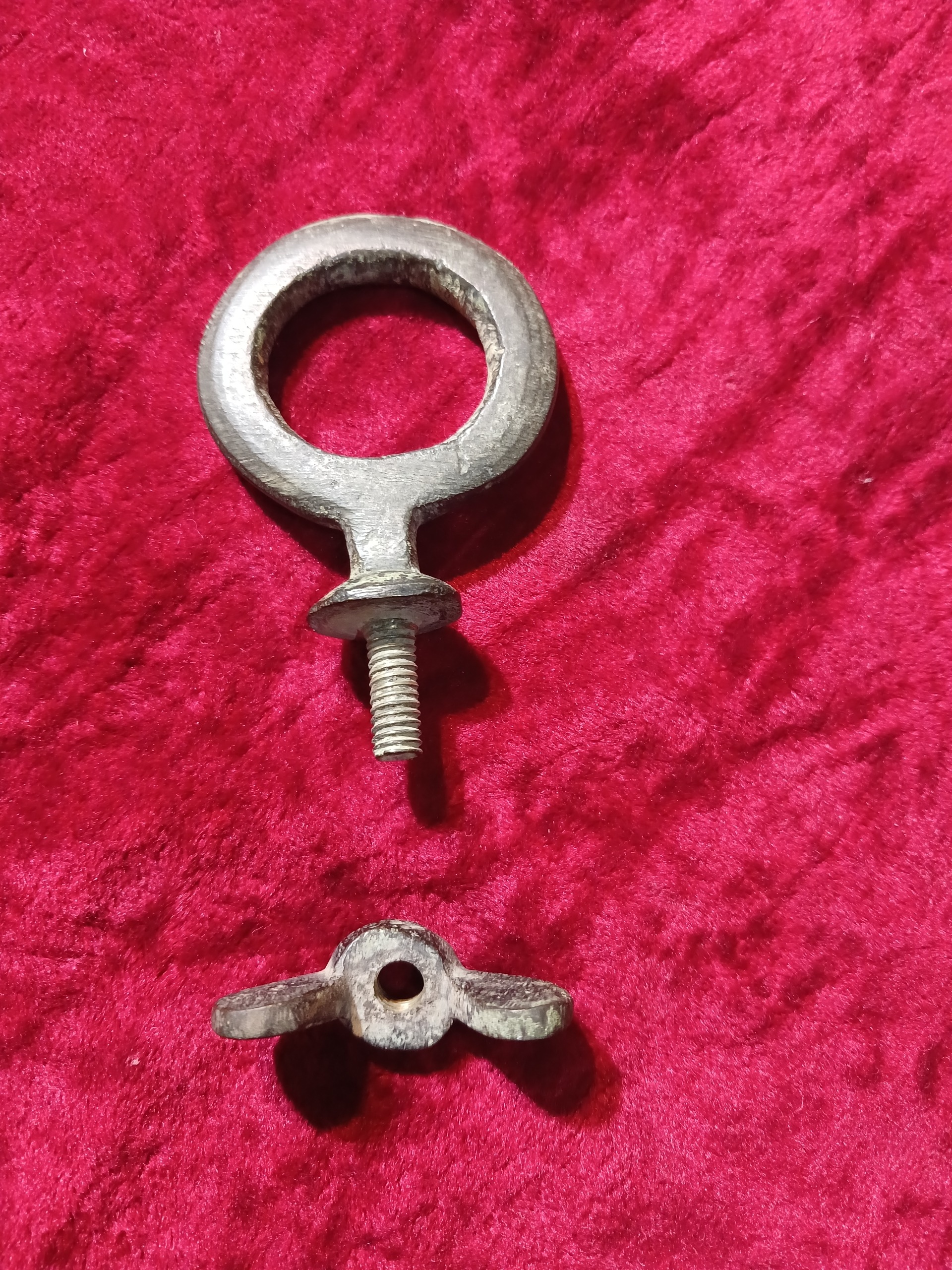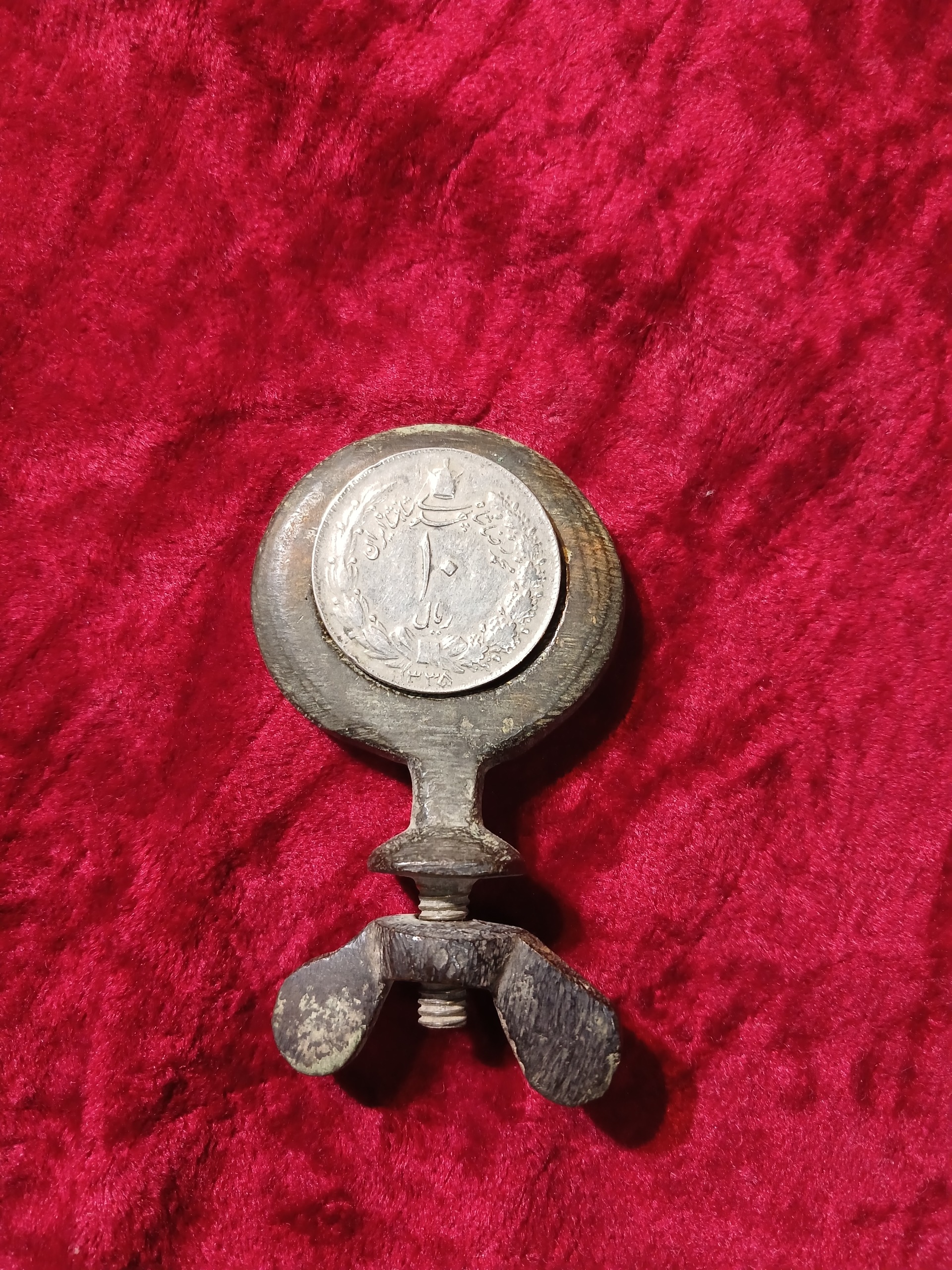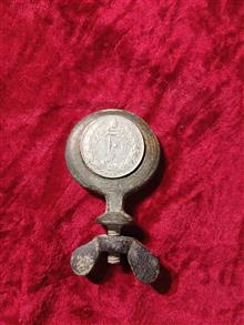 ابزار برنجی قدیمی دست ساز درست شده بروش ریخته گری  احتمالا بنظر بنده مال زمان پهلوی اول باشد برای چه کاری نمیدانم اندازه طبق شکل،