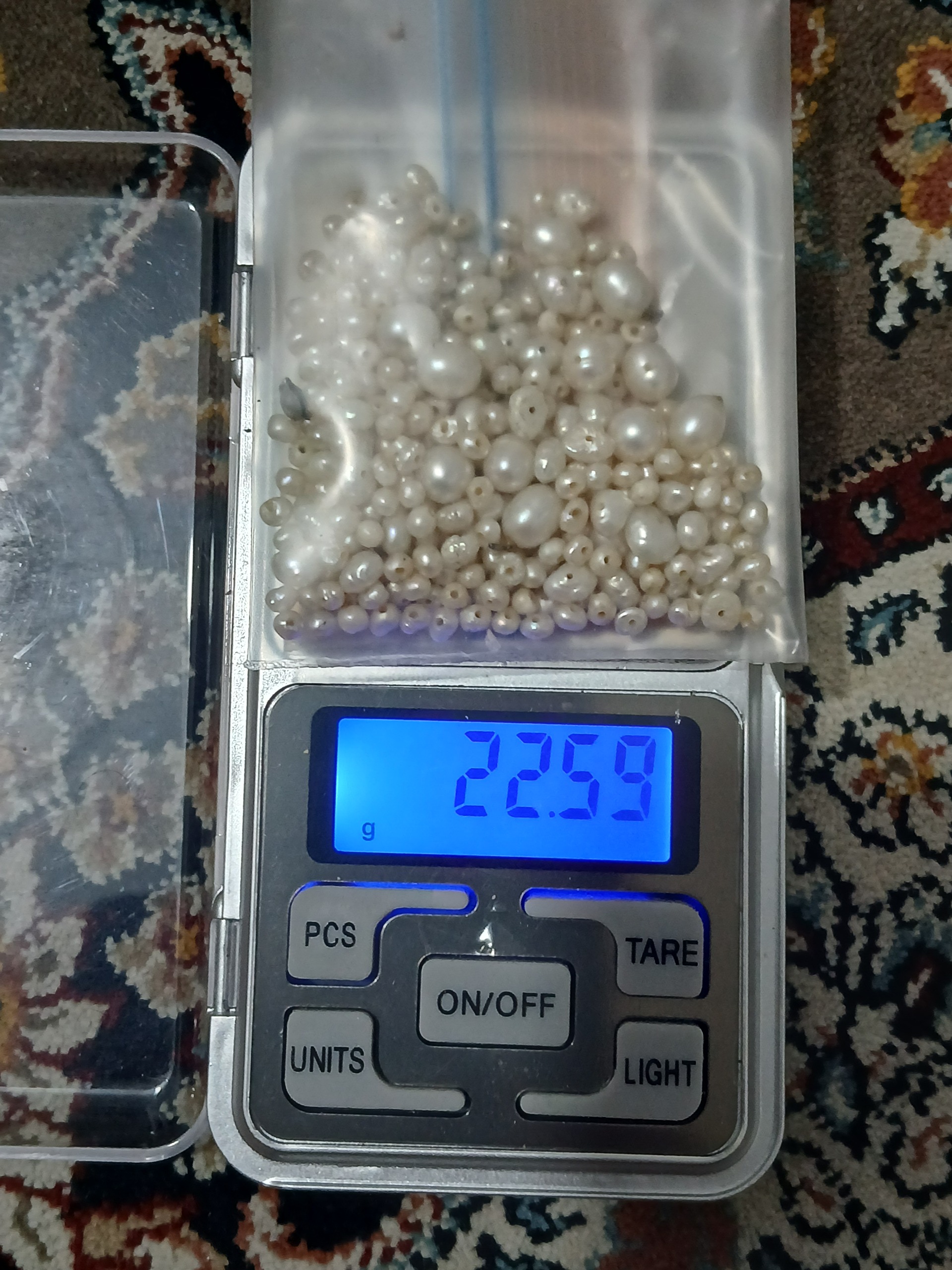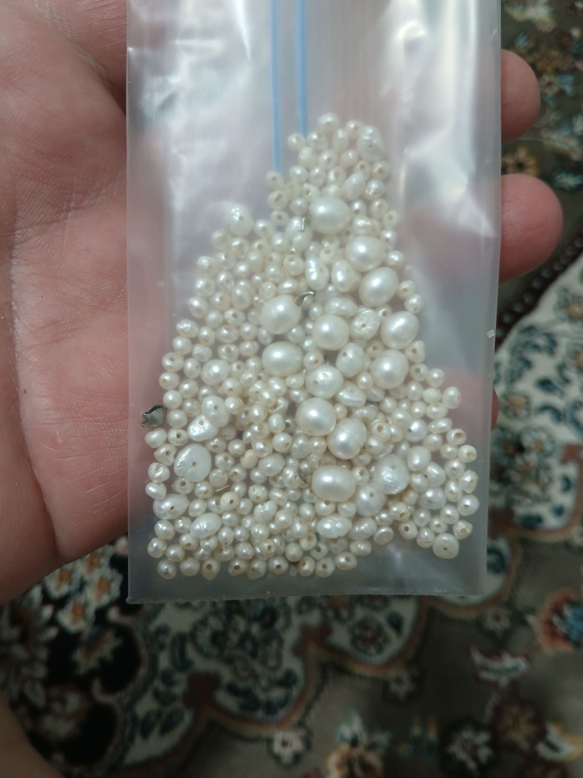 سلام تعدادی مروارید طبیعی ریزومتوسط به وزن 22گرم تعدادرونمیدونم همینجوری عددمیزنم