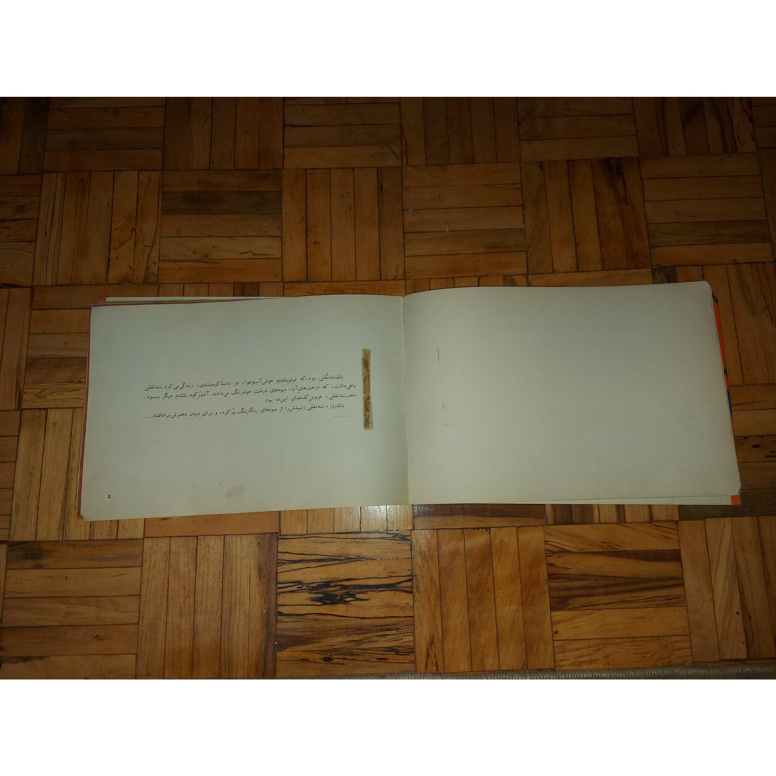 دقت کنید از خود چاپ صفحه 4 این کتاب سفید میباشد ضمنا برای ویرایش برگه هایی روی صفحات چسبانده شده بوده که اثر انها روی صفحات میباشد .همچنین لبه برخی صفحات خمیدگی دارند، ضمنا رنگرفتگیهایی روی جلد دو و پشت دیدا میشود ...همه کاملا مشخص درتصاویر و صرفا جهت تاکید.