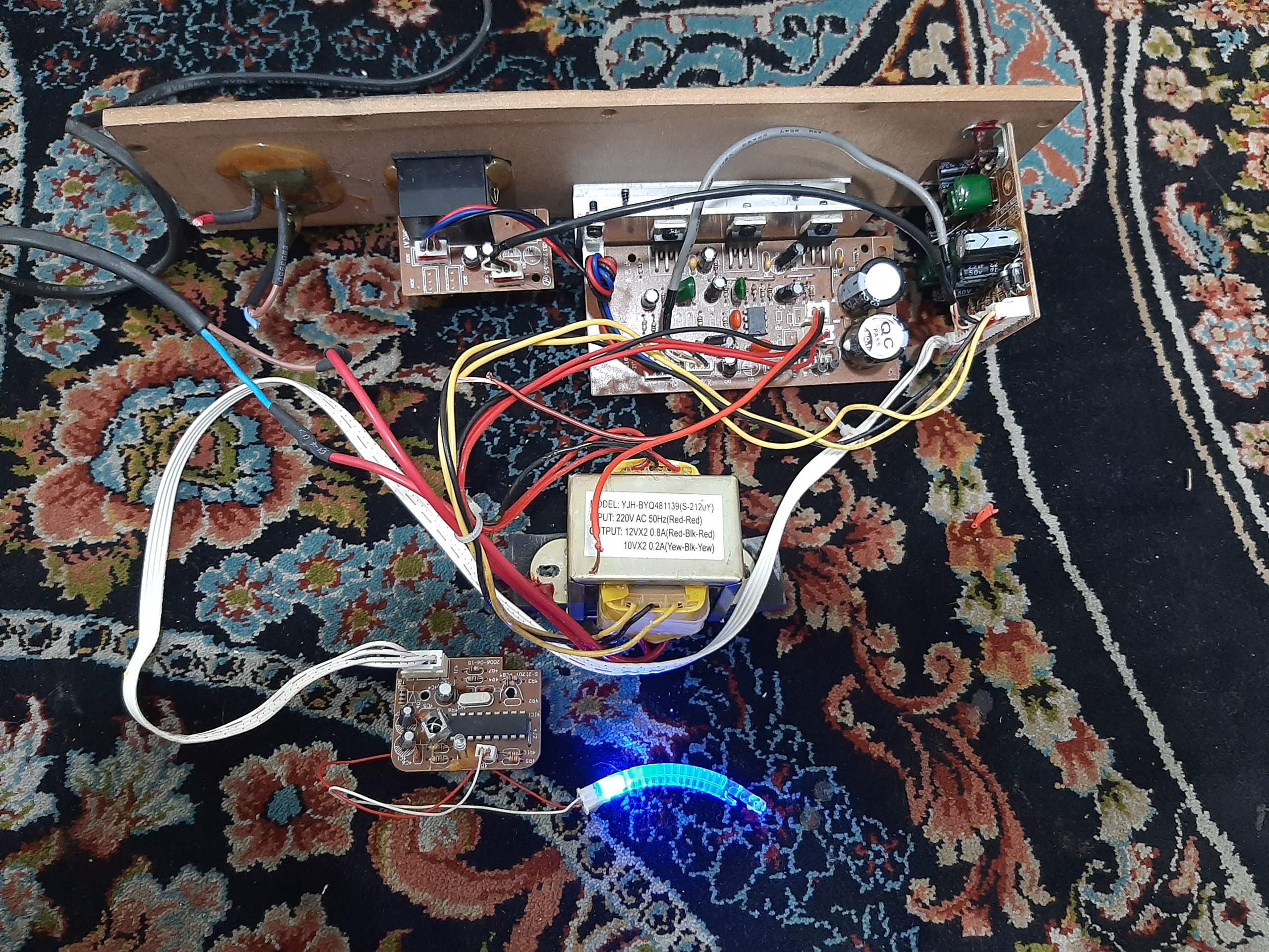 چشمی برای ریموت کنترل داره...ولی روی خود دستگاه هیچ چیزی برای تنظیمات نداره..مستقیم به برق میزنید و گوشی رو به قسمت AUX وصل میکنید.