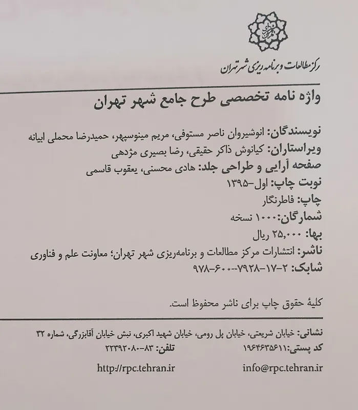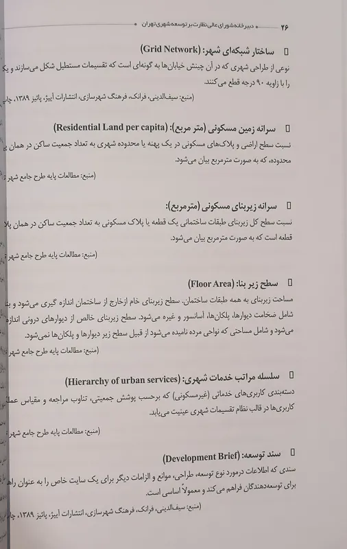 واژه نامه تخصصی طرح جامع تهران (برنامه ریزی شهری)