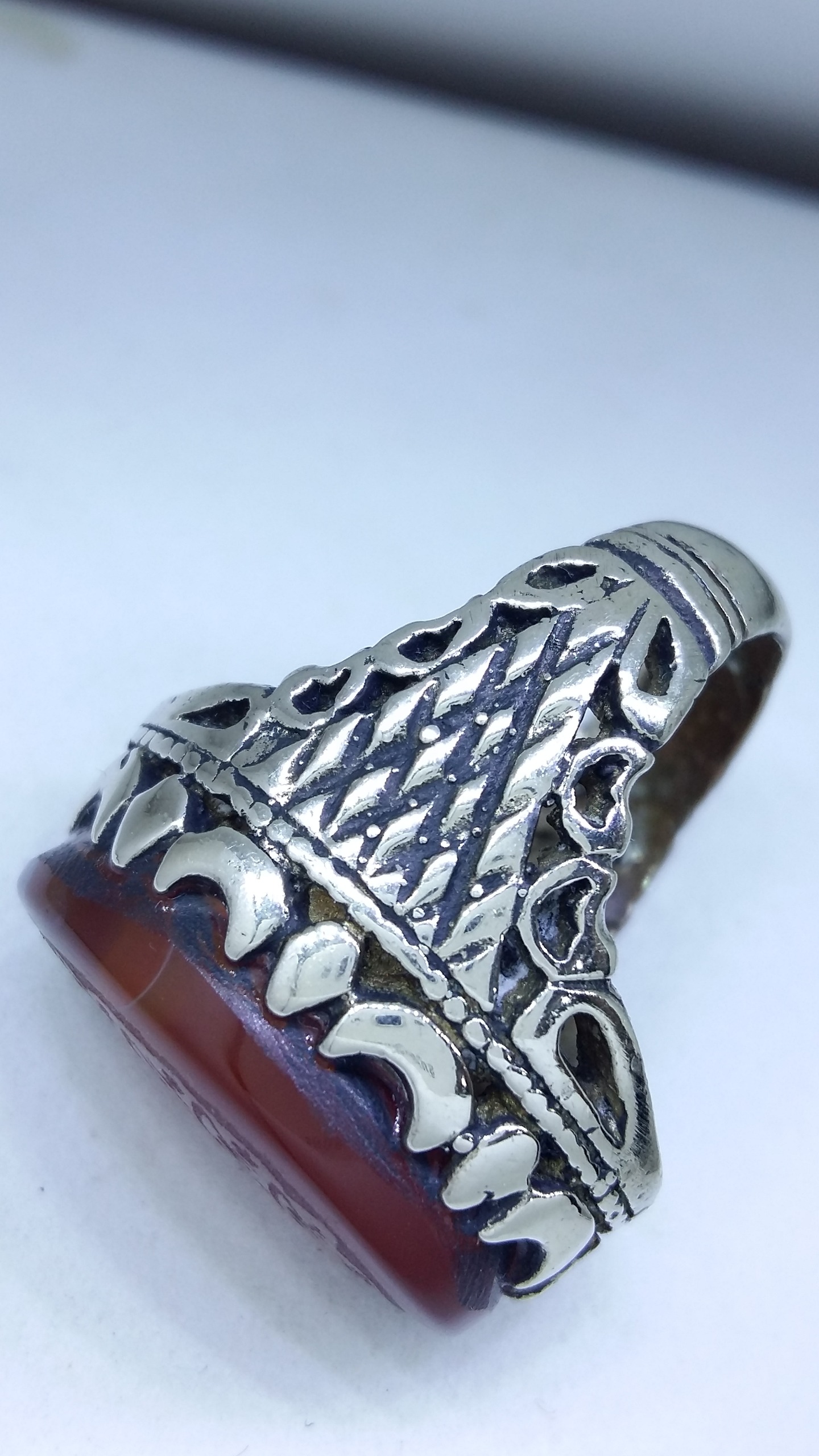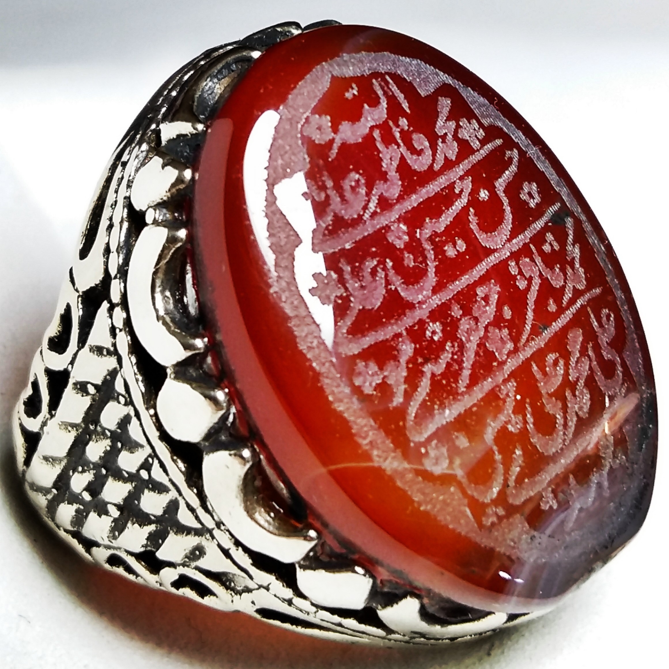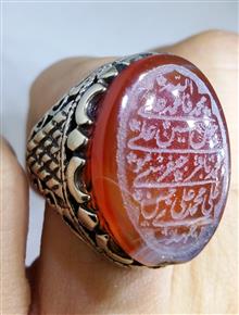 انگشتر ارزنده عقیق آلبالویی با حکاکی چهارده معصوم