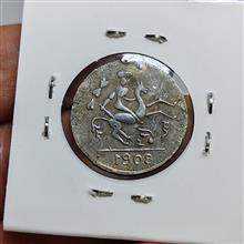 سکه نقره پولک خارجی مرد اسب سوار 1908 انگلستان