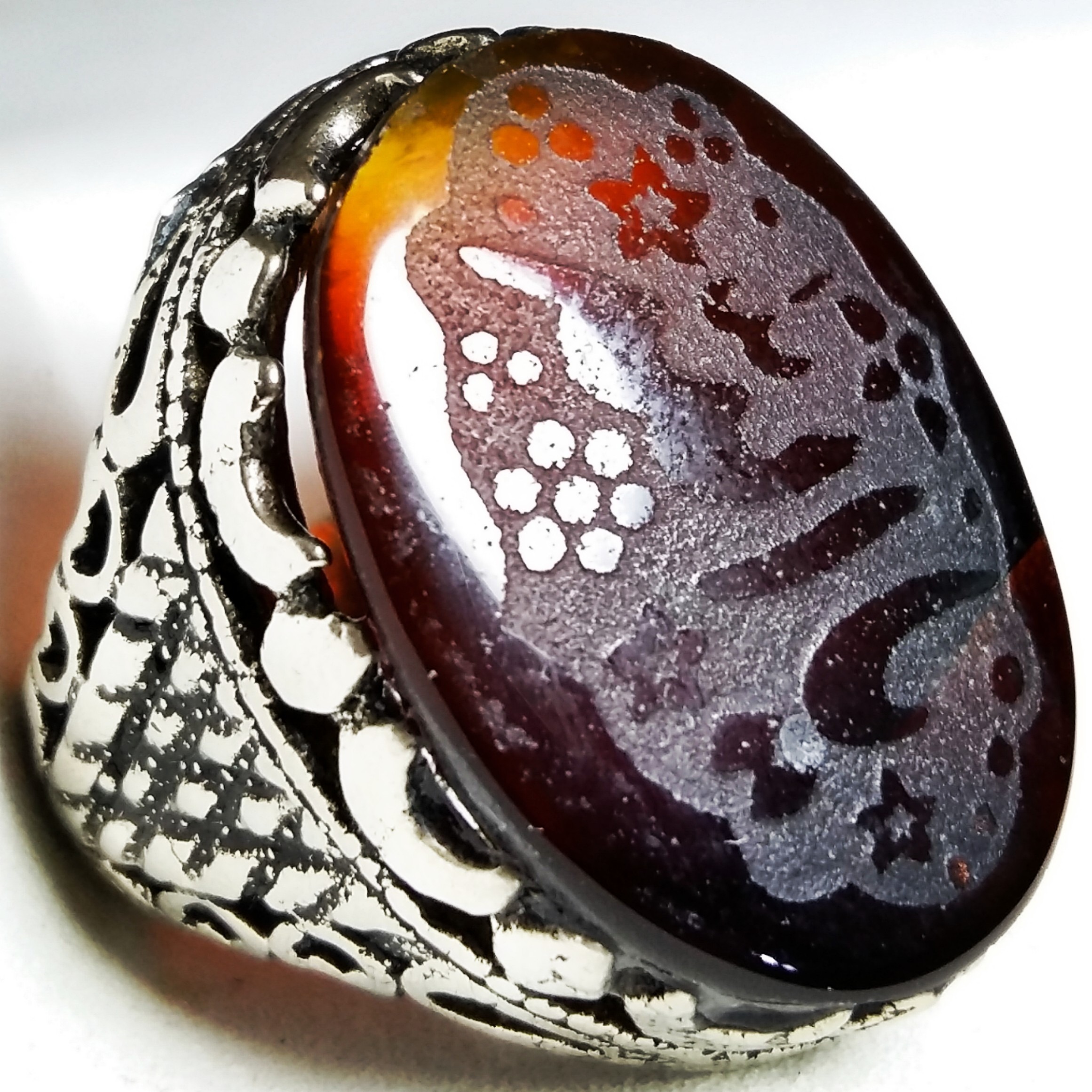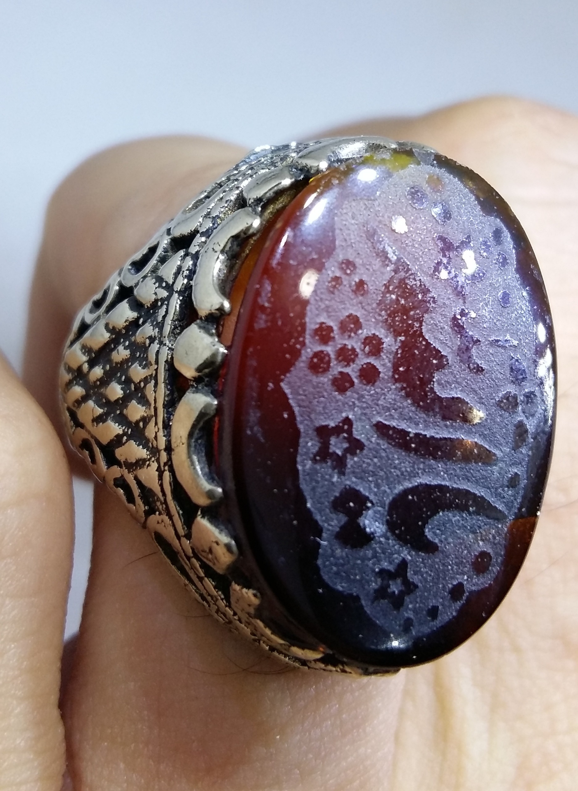 انگشتر ارزنده عقیق کبدی اصیل با حکاکی یا الله