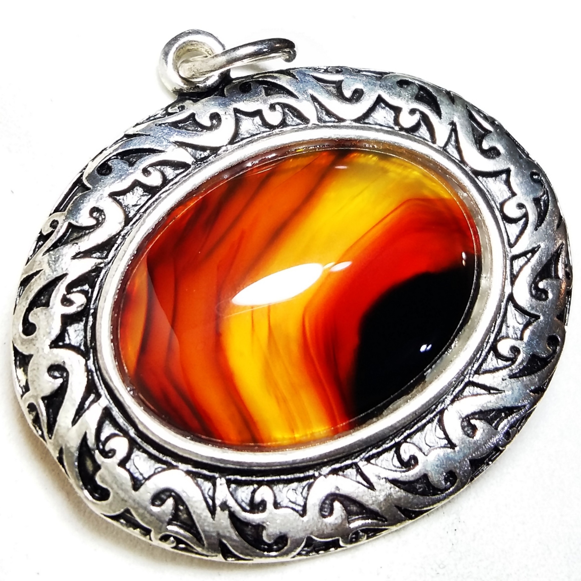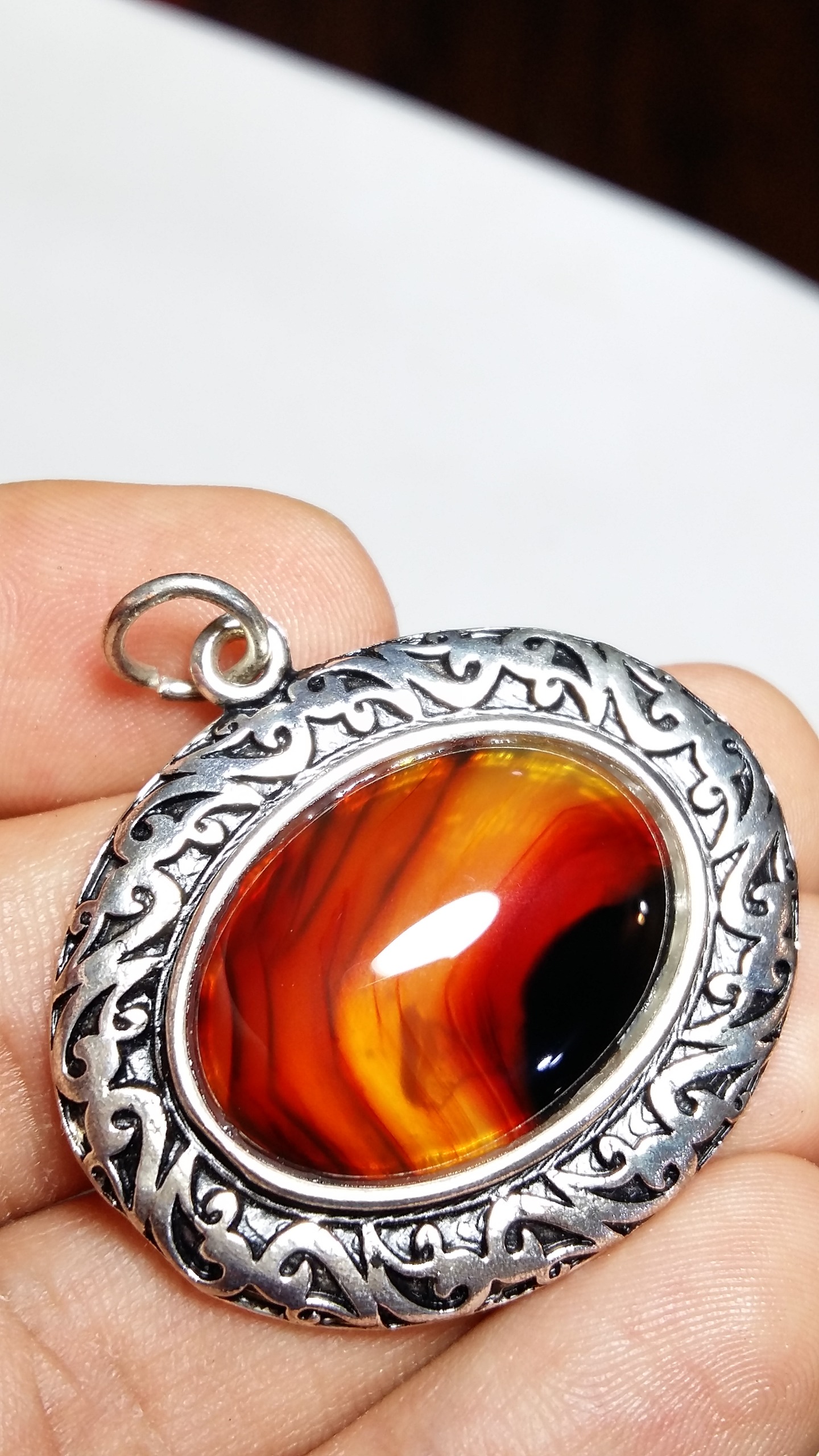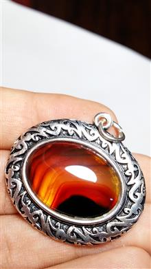 آویز قلمکاری عقیق دو رگه کمیاب فوق العاده زیبا