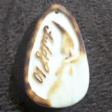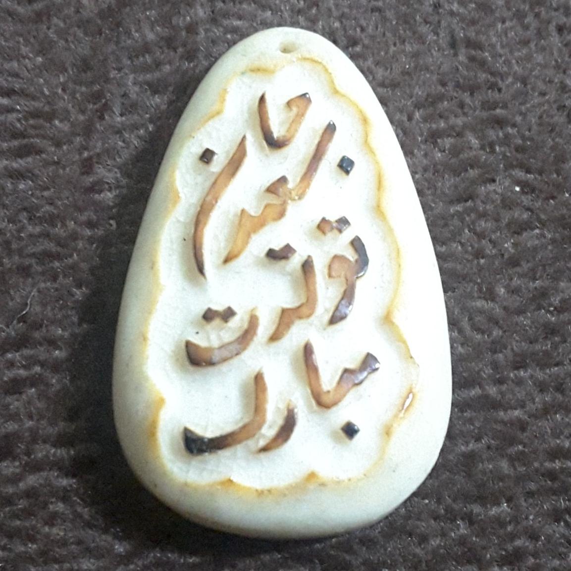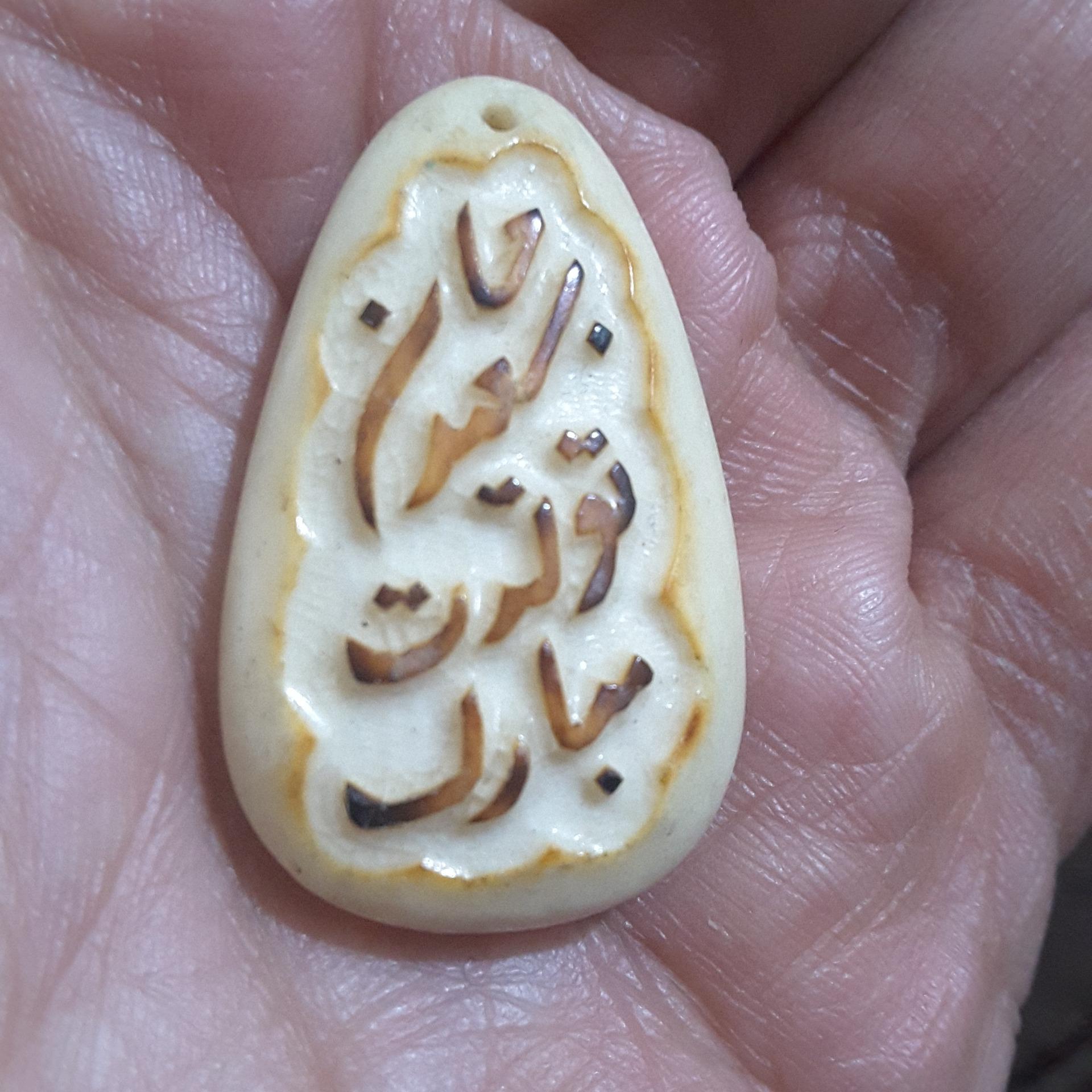 ساخته شده از استخوان خام گاو پس از حکاکی با آتیش داغ شده و رنگ قهوه ای مال داغی آتیش هست ساخته شده دست توسط هنرمند قدیمی
